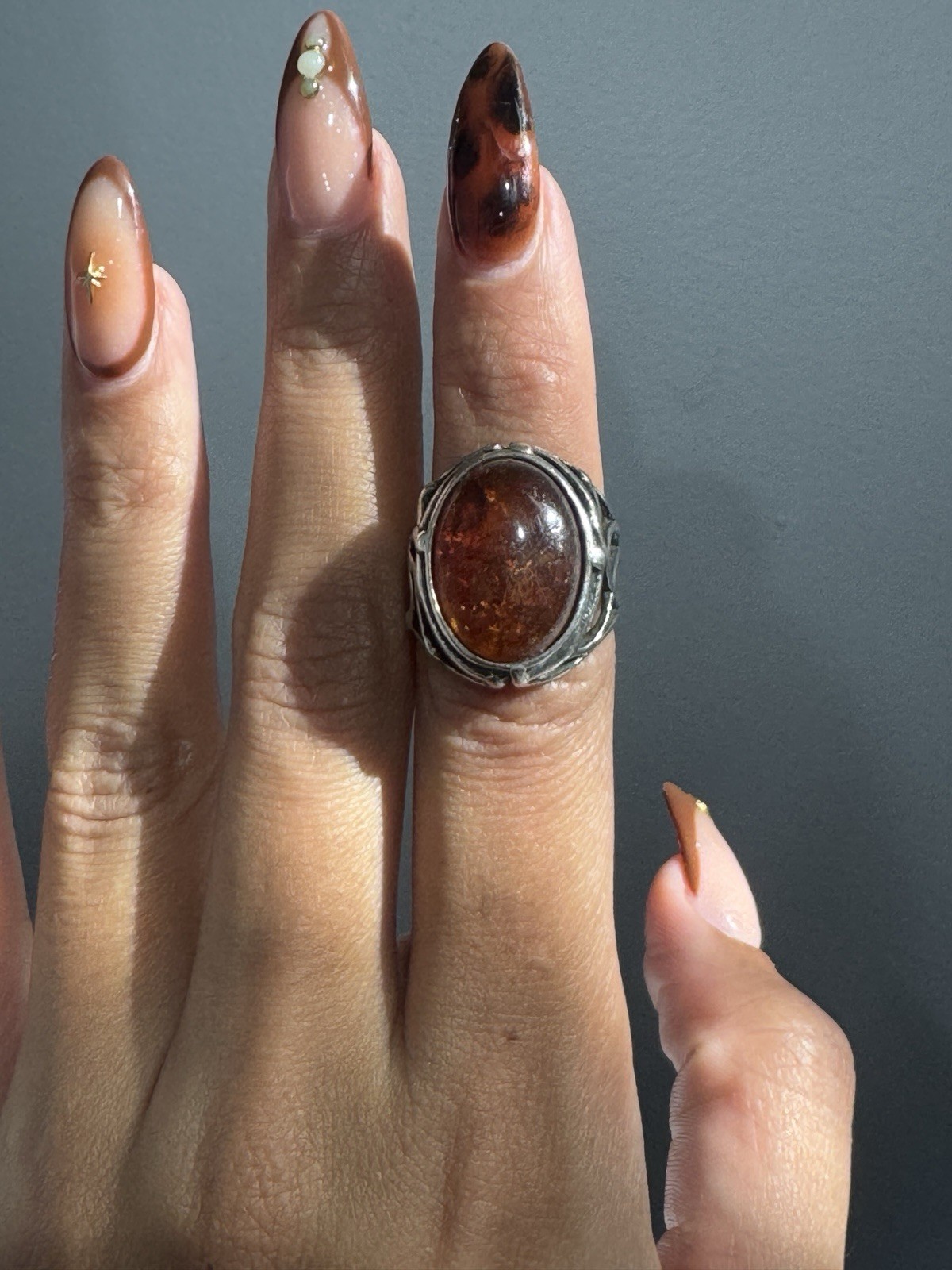 Vintage Israel 925 Sterling Silver Baltic Amber Ring Sz 7