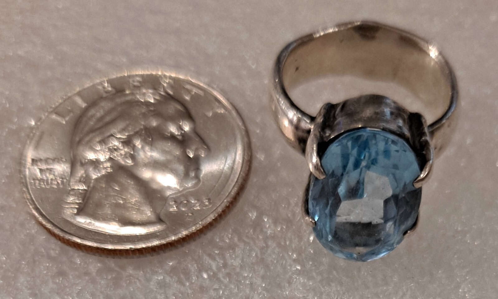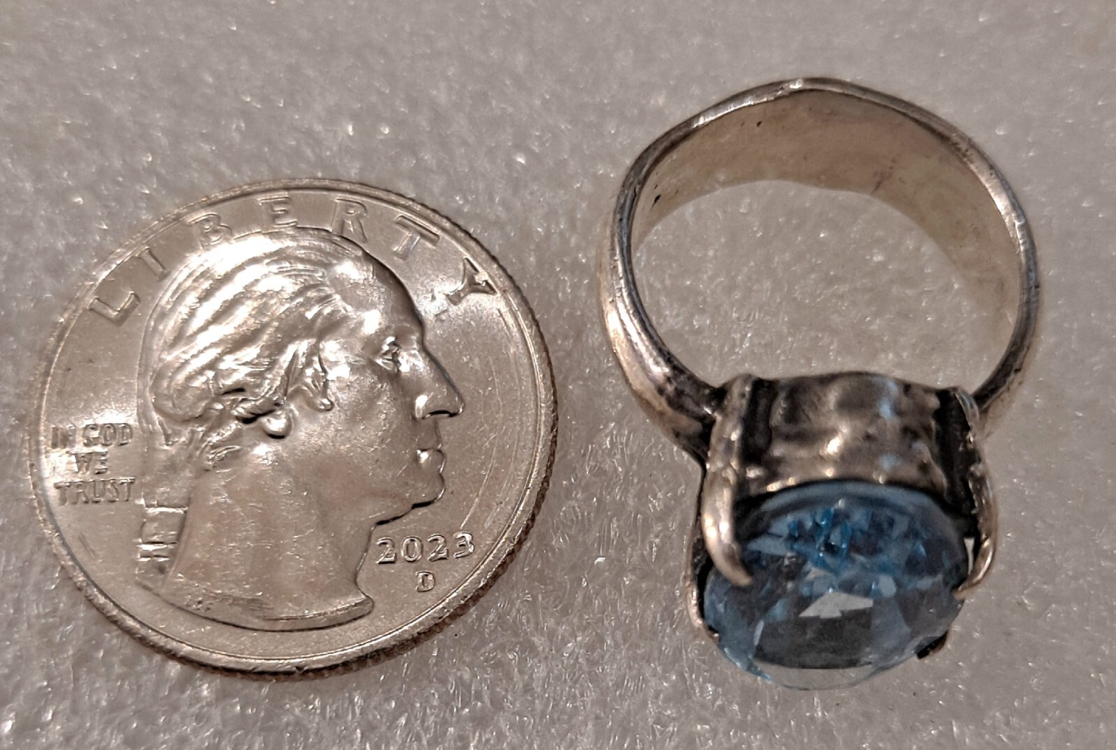 как выглядит Vintage Artisan Blue Topaz Sterling Silver Ring Over 5 Carats In Size фото