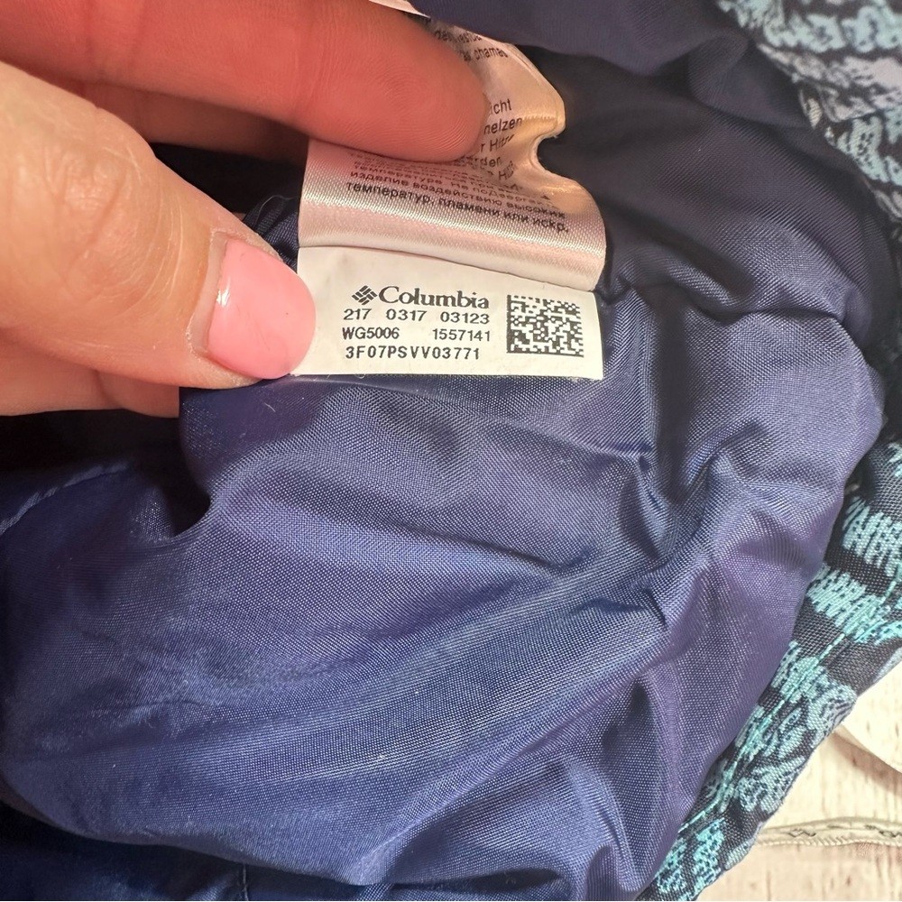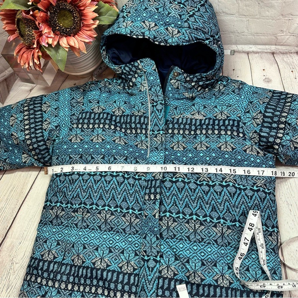 как выглядит Columbia Geometric Blue Kids M Puffer Jacket winter snow ski cabin outerwear фото
