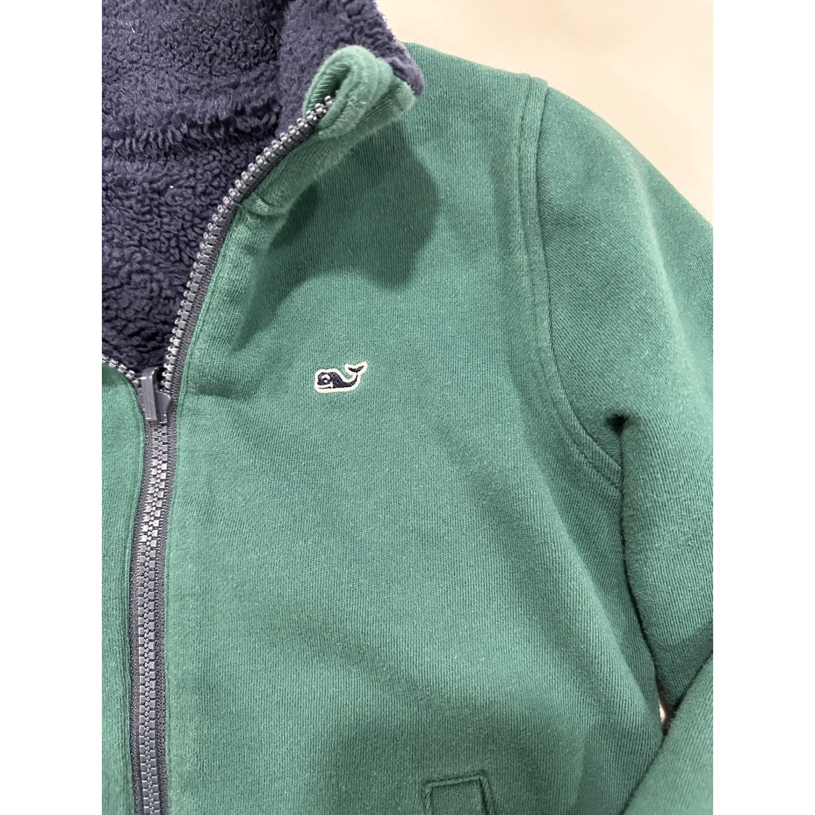 как выглядит Vineyard Vines Reversible Fleece Jacket Boys Size 7 Green Navy Whale Logo фото