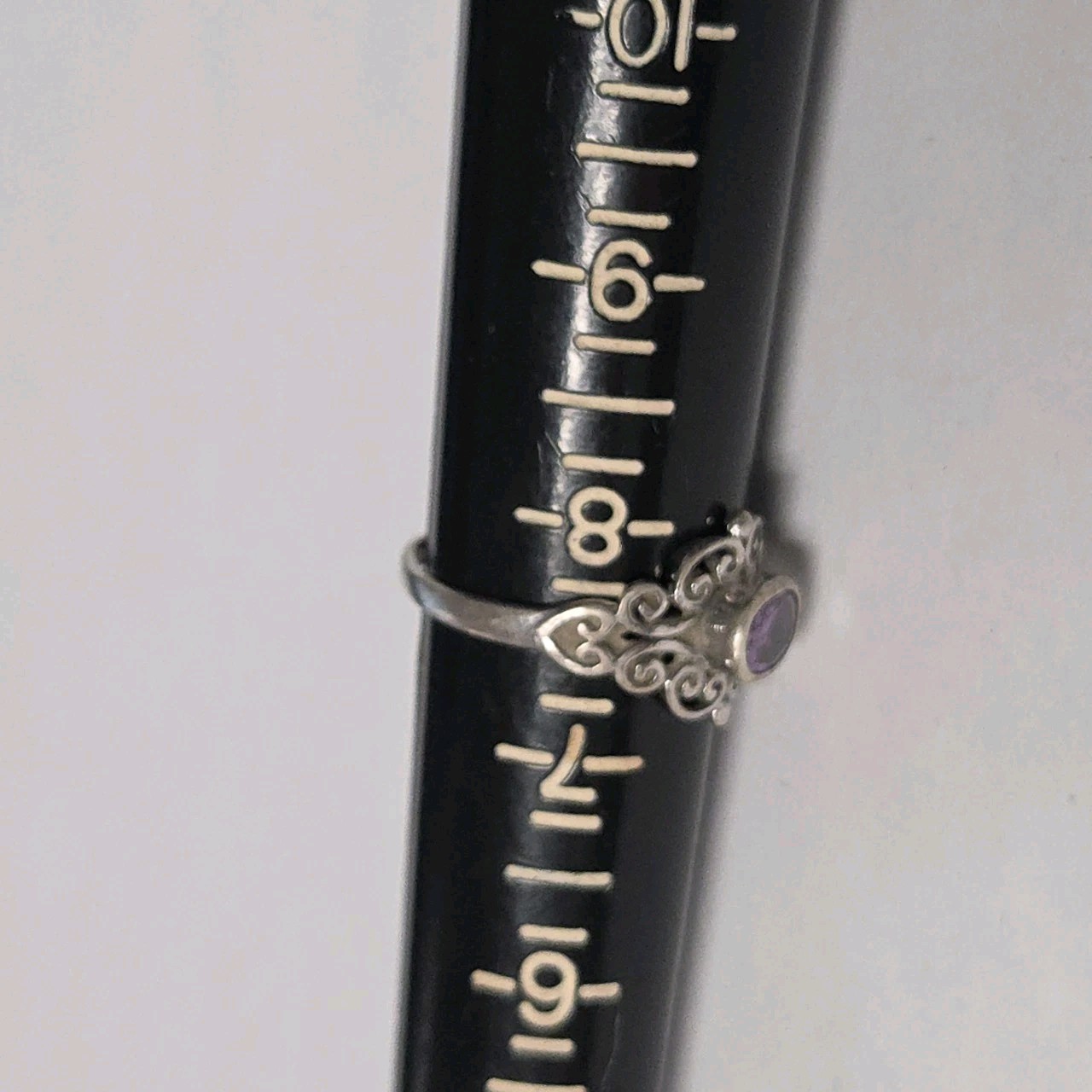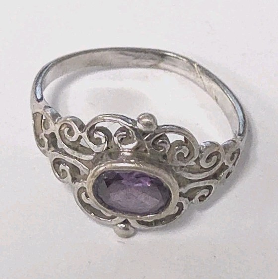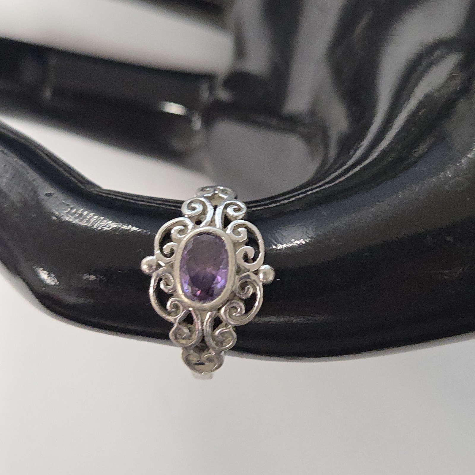 Vintage Sterling Silver Filigree Amethyst Ring Marked NF Brand 925 Size 7.5