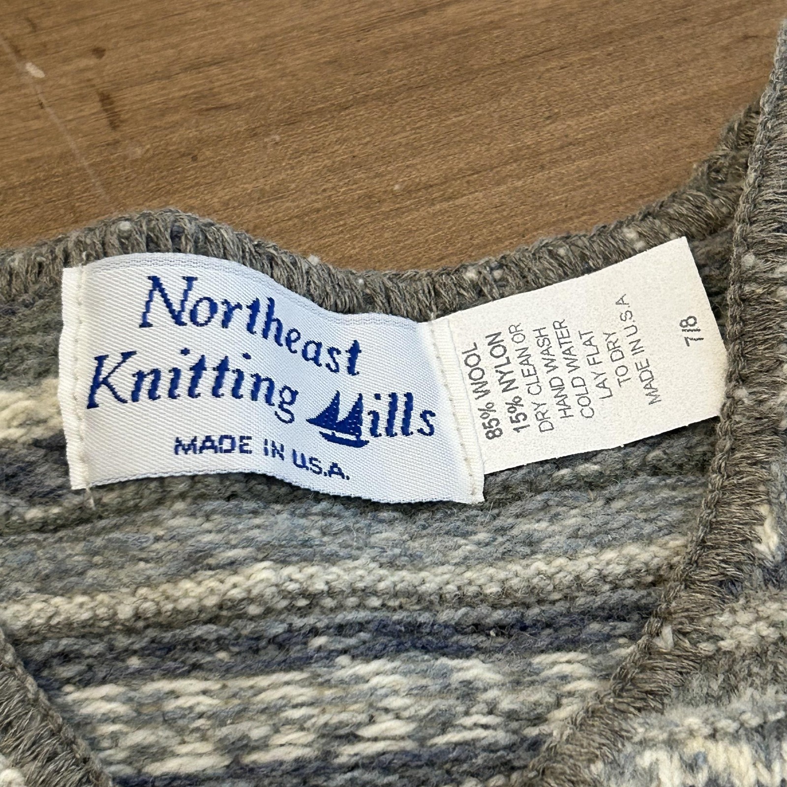 Northeast Knitting Mills Sweater Kids 7-8 Gray Fair Isle Wool Pullover USA