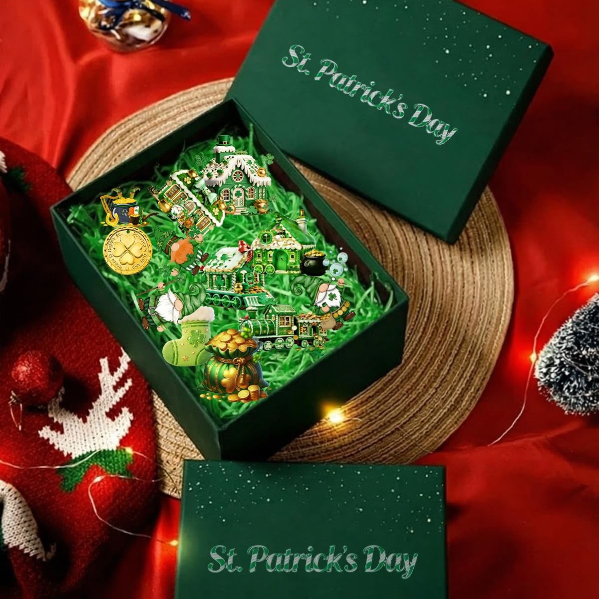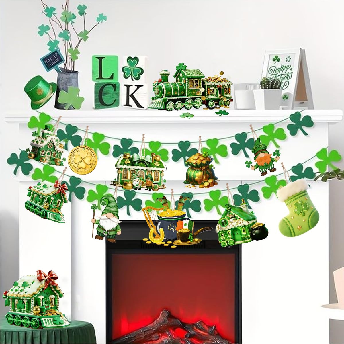 12Pcs St.Patrick's Day Wooden Hanging Shamrock Ornaments Green Lucky House Gnome