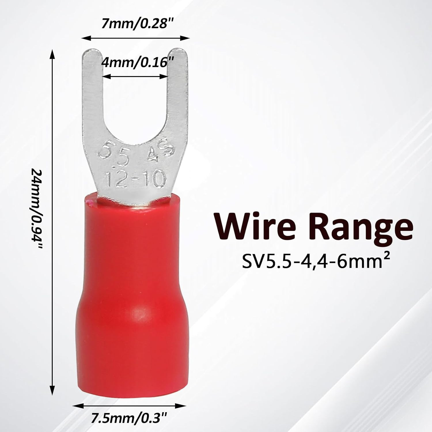 100 Pcs 12-10 AWG Insulated Fork Spade Wire Connector, U Type Electric