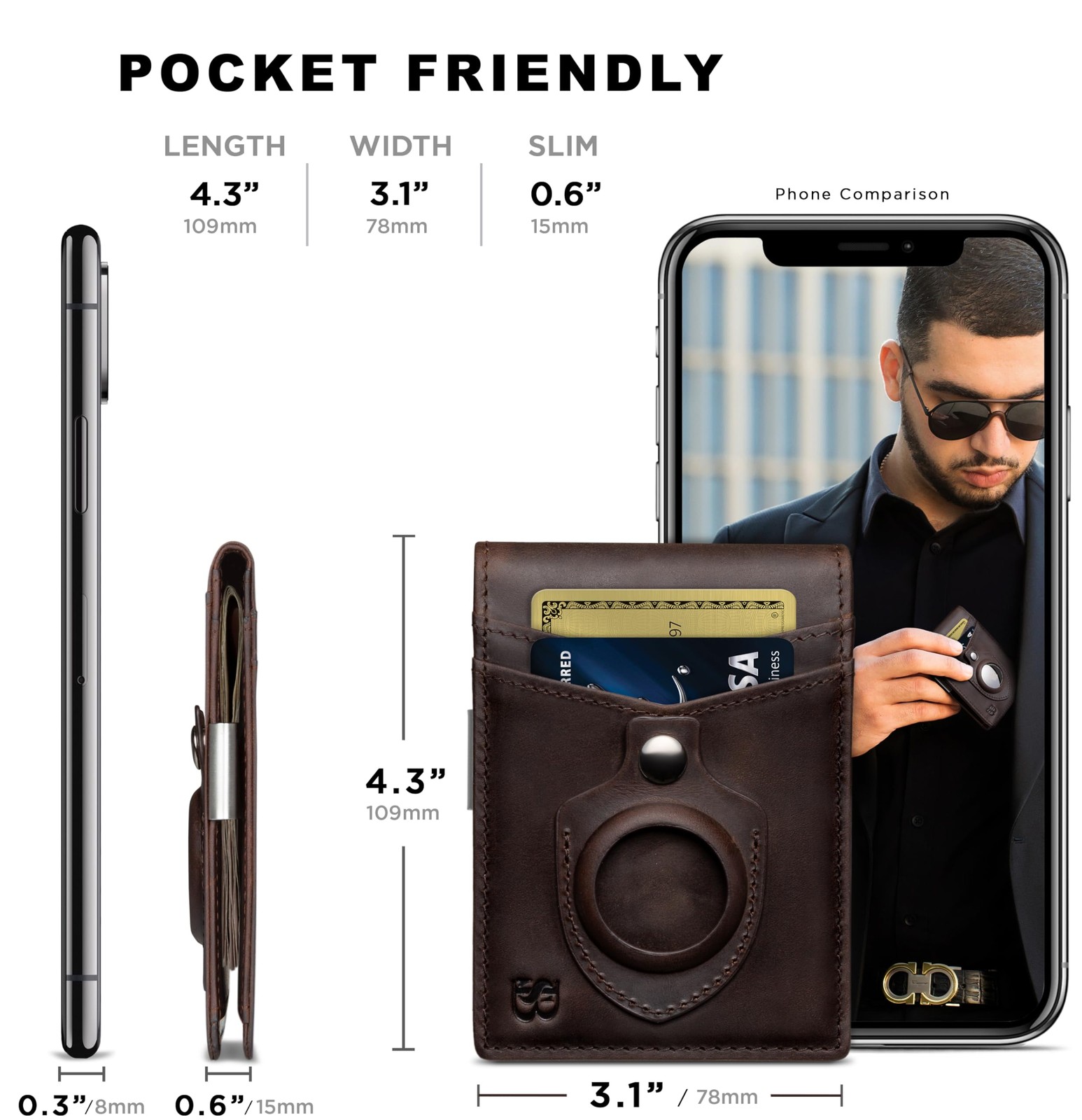 AirTag Wallet - RFID Blocking Mens Minimalist Money Clip Wallet for Airtag - ...