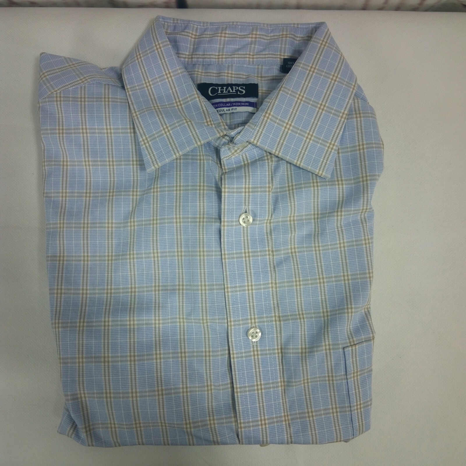 Chaps Regular Fit Light Purple Tan Plaid Long Sleeve Dress Shirt 16 1/2, 34/35