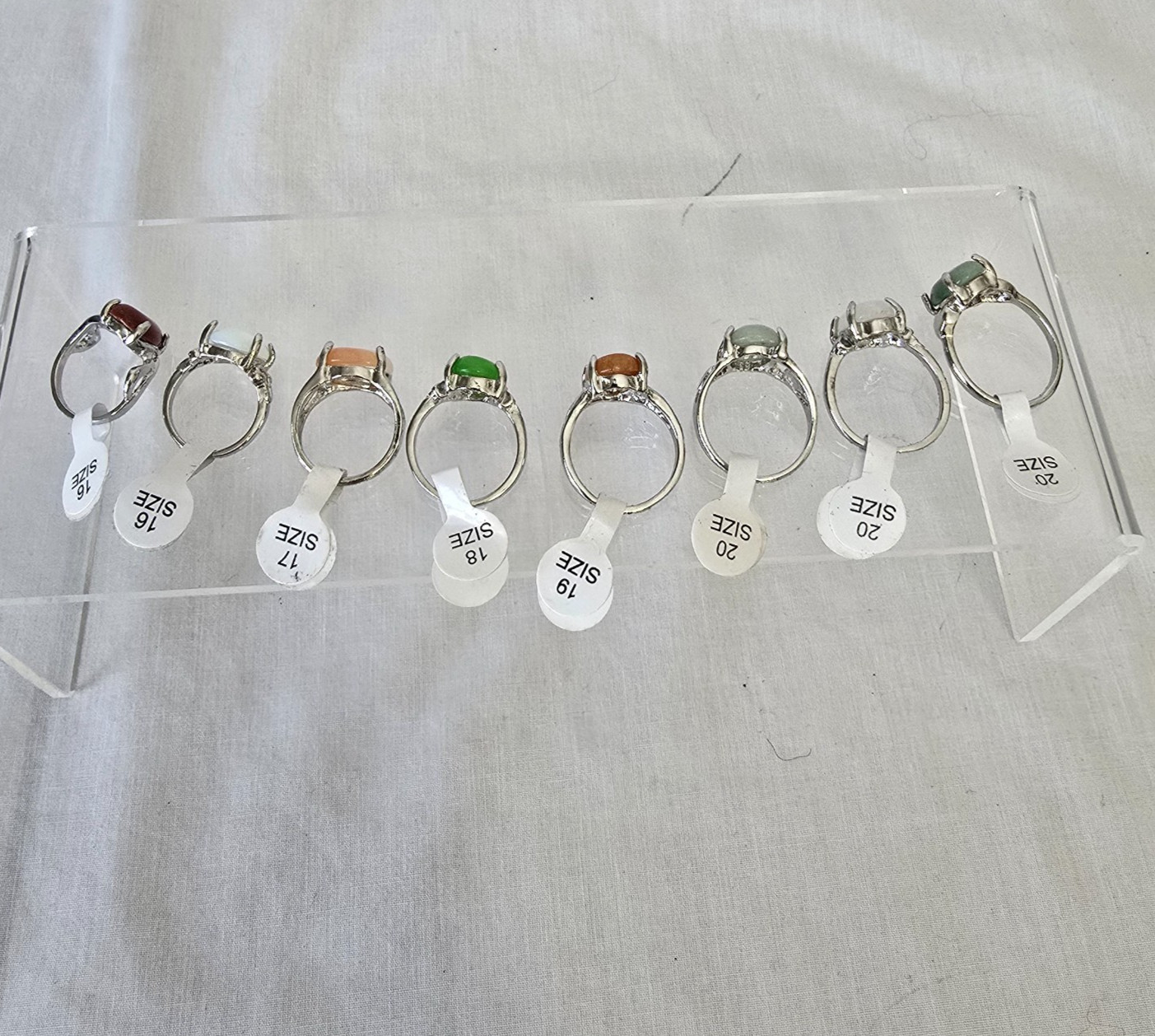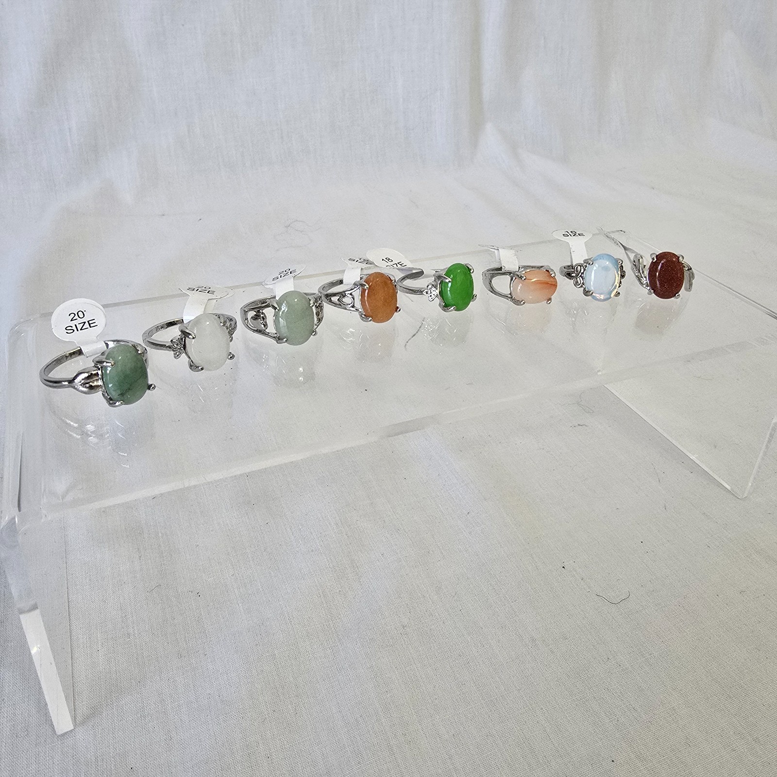 8 Moonstone Gem Silver Plated Rings Multiple Colors, Styles Sizes 5-9.5 New