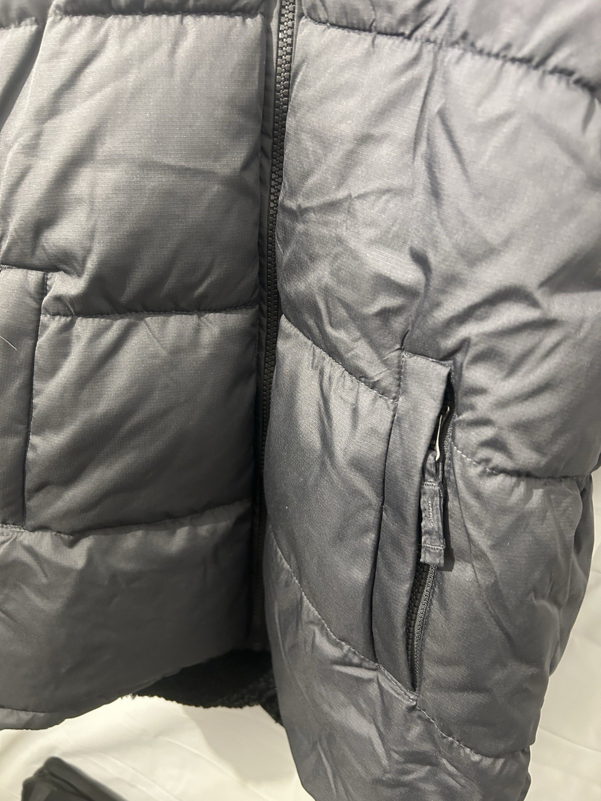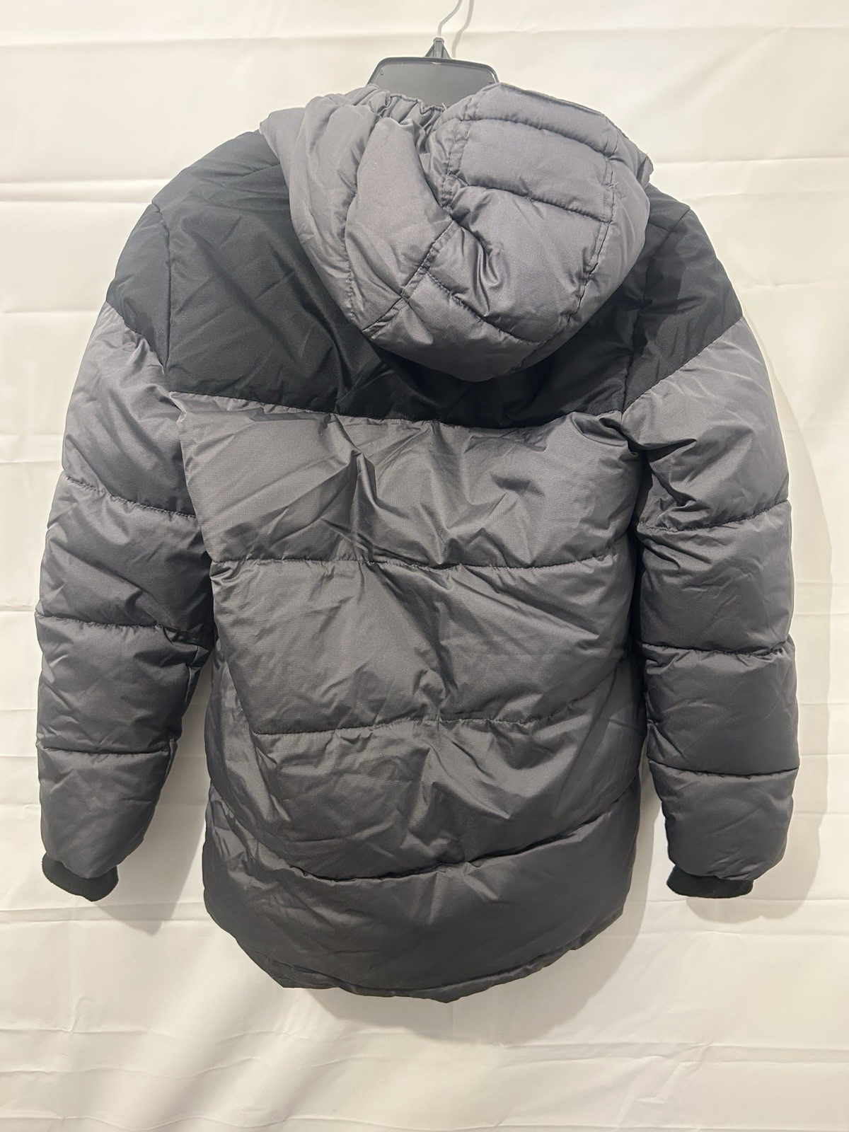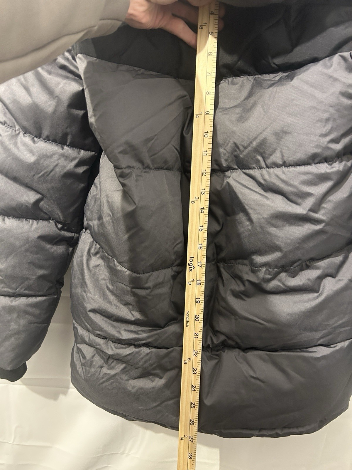 как выглядит Lands End Boys Puffer Parka Size L 14/16 Black and Gray Winter Coat with Hood фото
