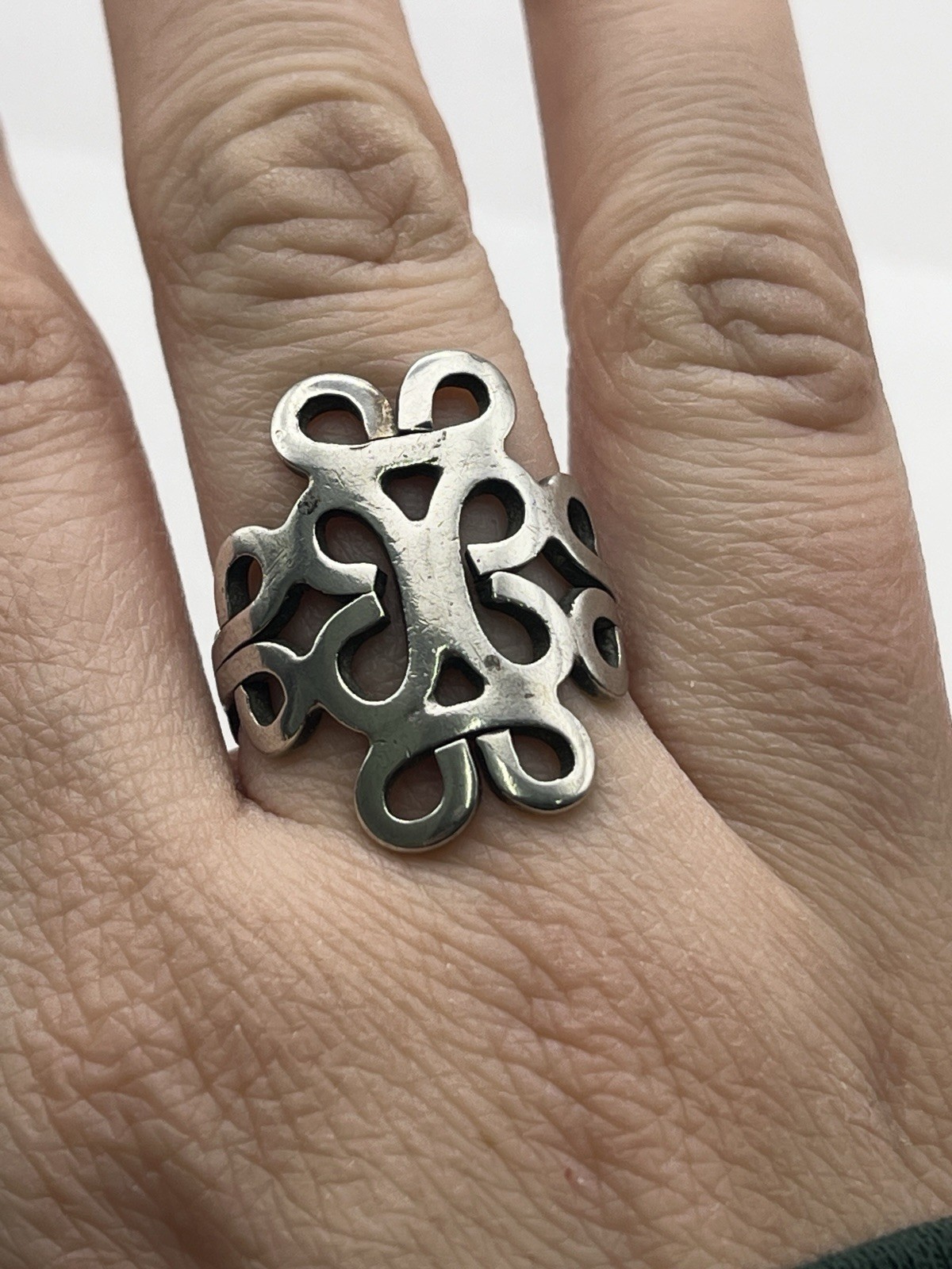 Mexican 925 Sterling Silver Scrollwork Openwork Statement Ring Size 8.5