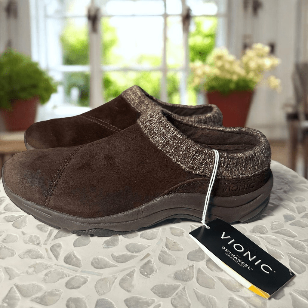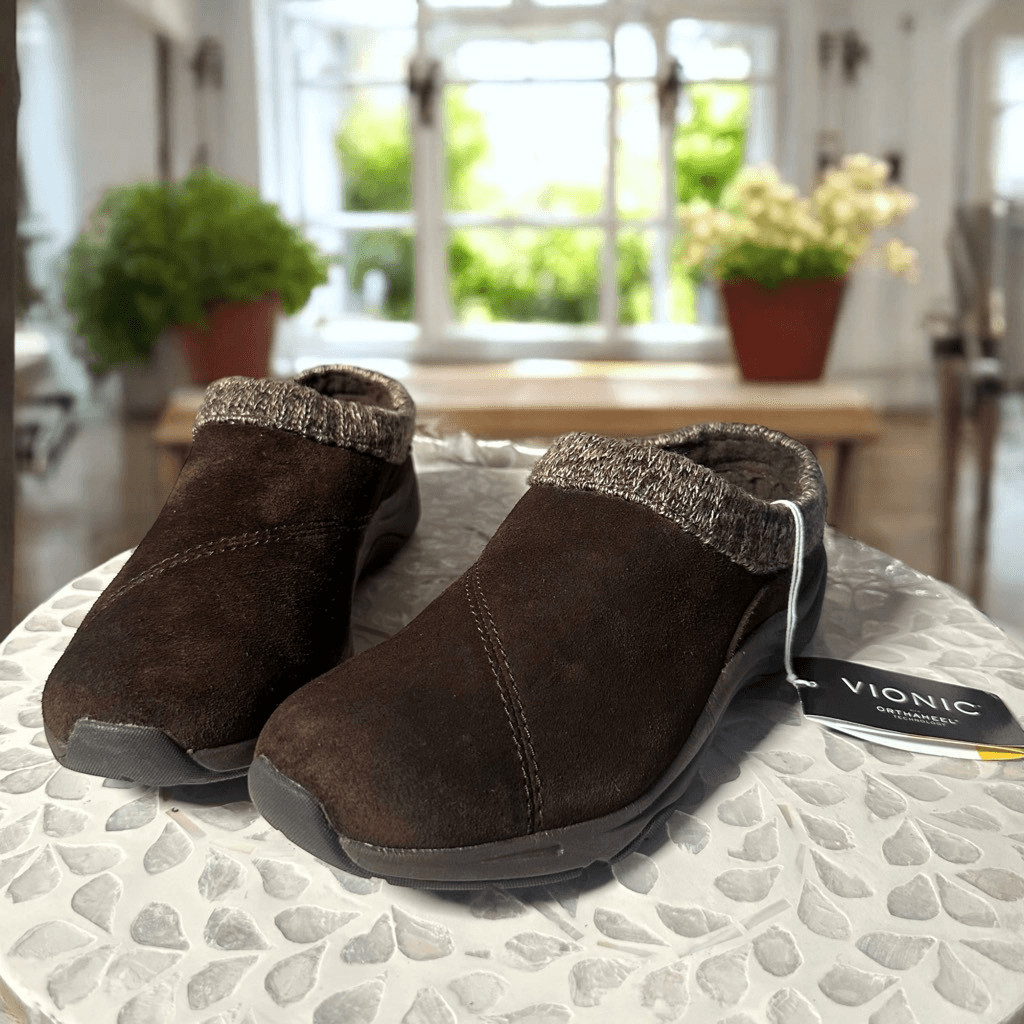 Vionic Orthotic Water Resistant Arbor Clog Slippers Women s 6 Brown Suede Knit C