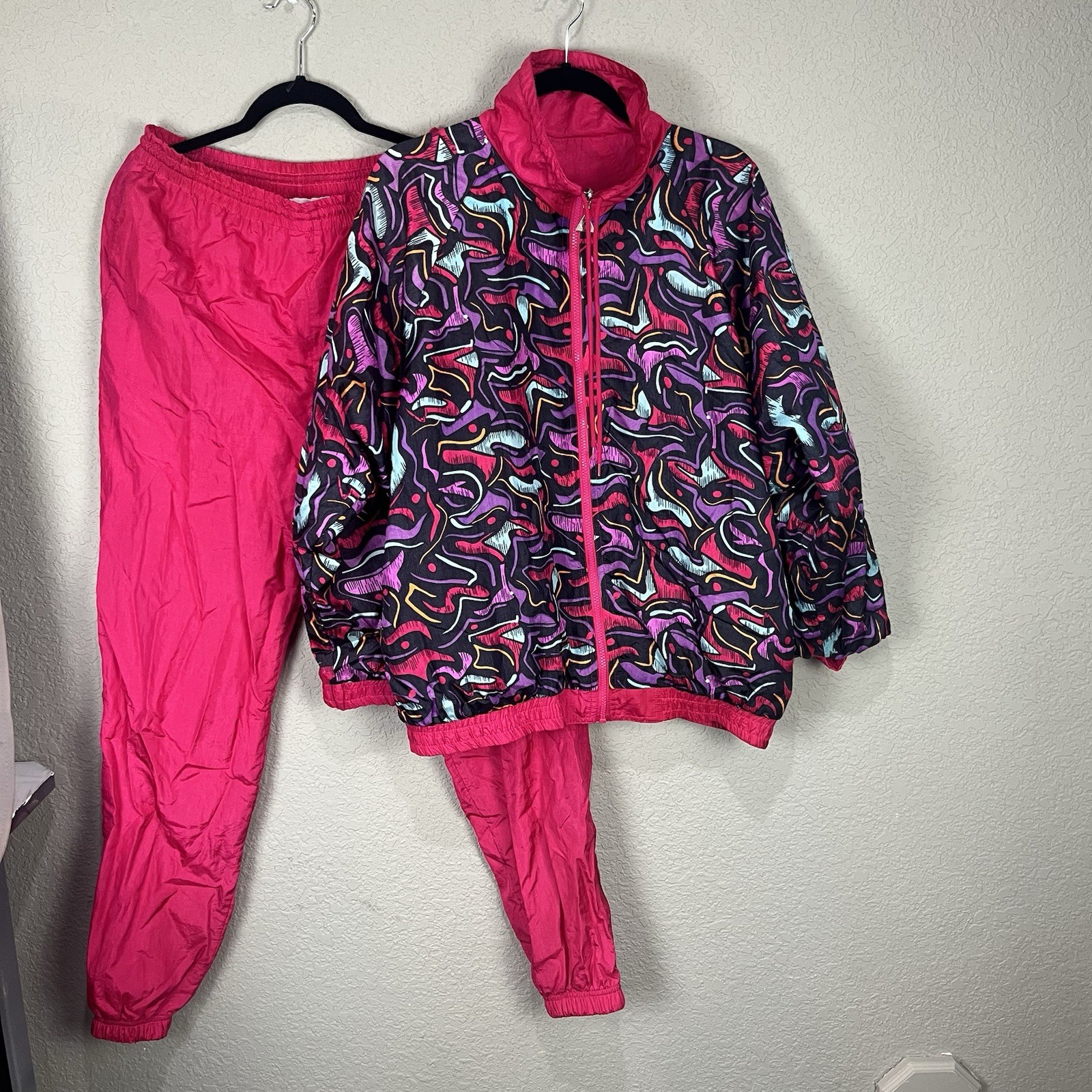 Vintage Casual Isle Women's Track Suit Sz Large Fuchsia Reversible Jacket 1980's
