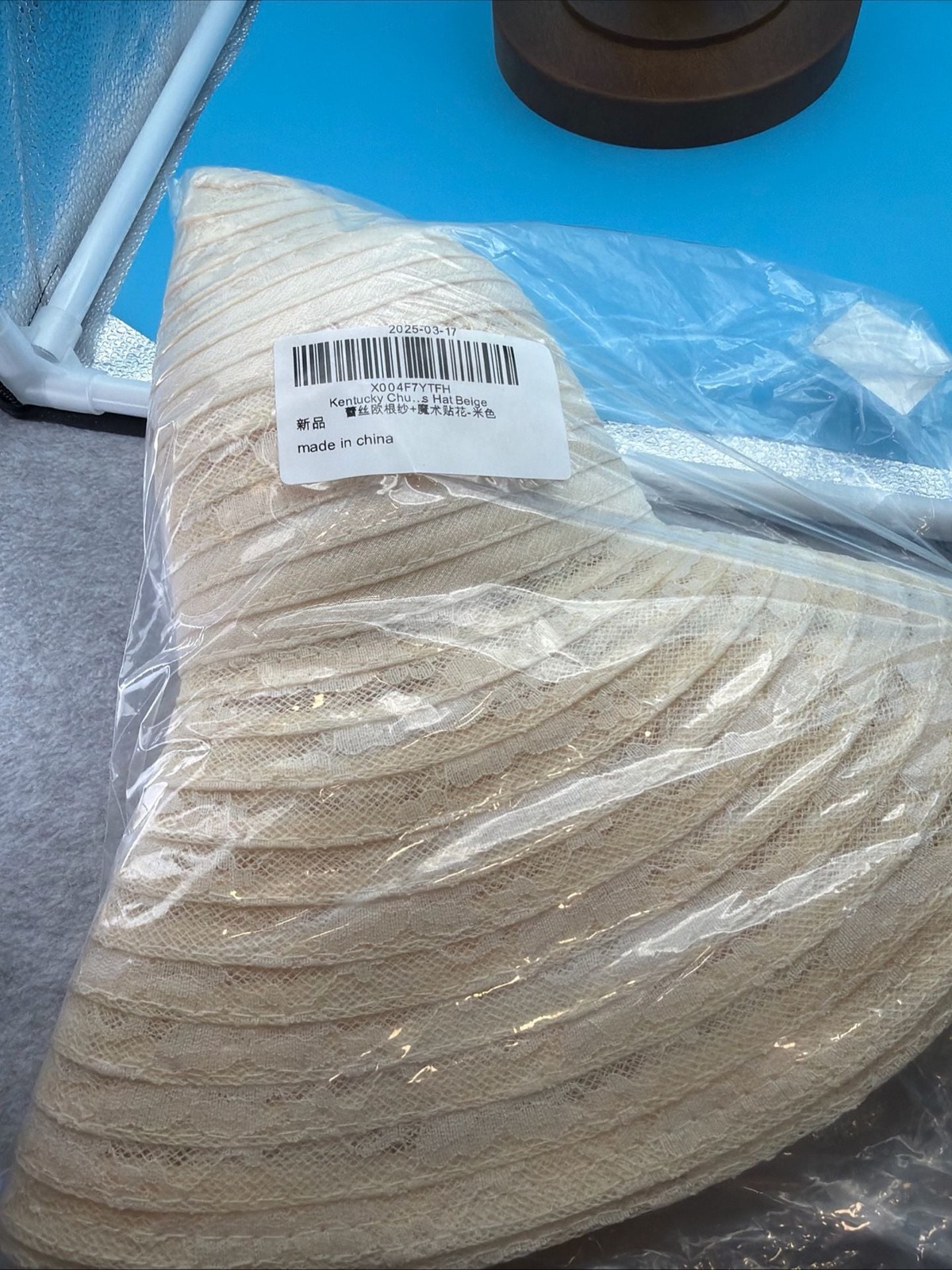 как выглядит Kentucky Church Derby Wide Brim Lace Overlay Sun Hat Beige фото