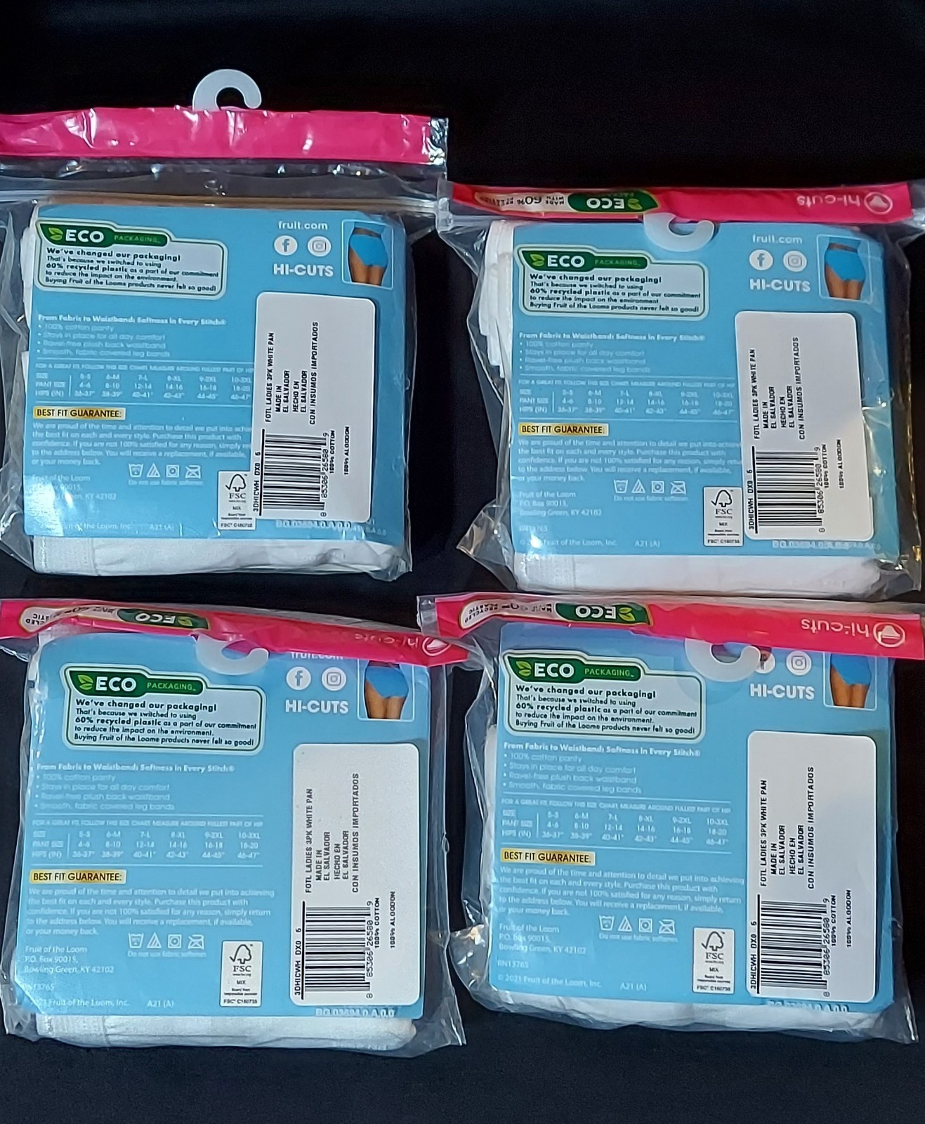 Women's sz 5 White Fruit of the Loom Hi-Cut Briefs NIB