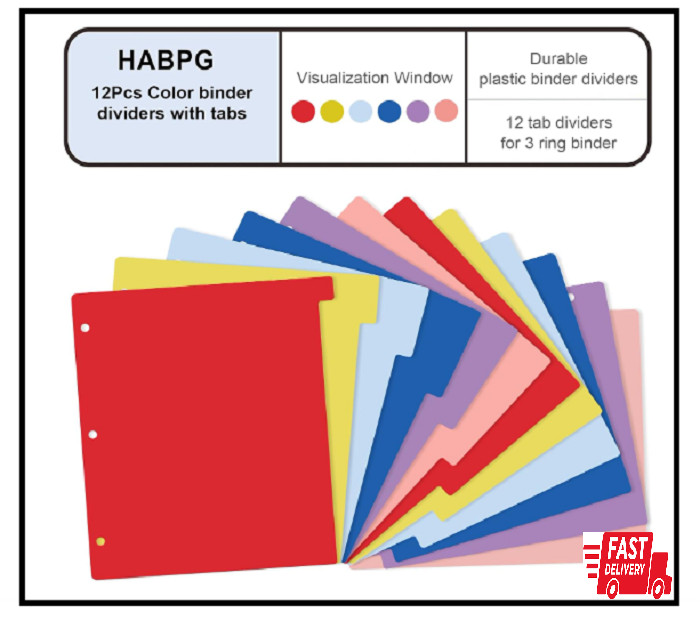 12 Tab Binder Dividers Multicolor Notebook Folder Dividers for 3 Ring Binder