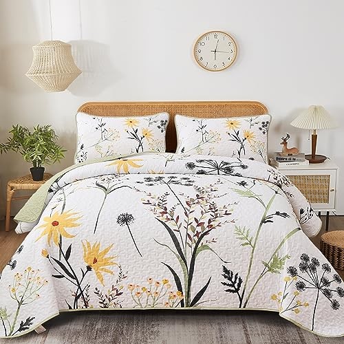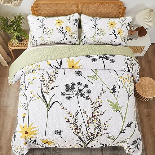 Sage Green Floral Quilt Set Size, Yellow White Queen Sage Green and Yellow