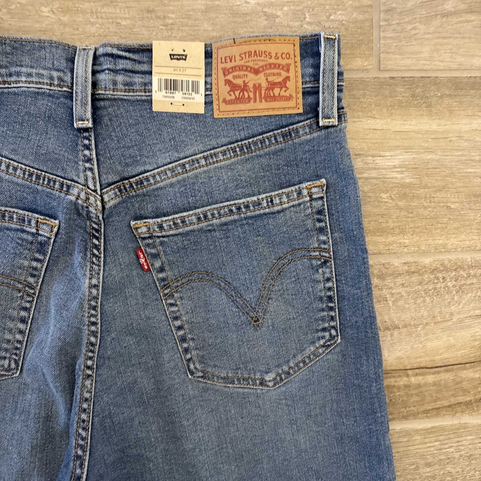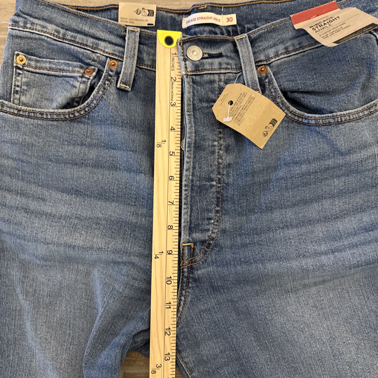 как выглядит Levis Premium Ribcage Straight Ankle Womens Denim Jeans 30x27 Blue Button Fly фото