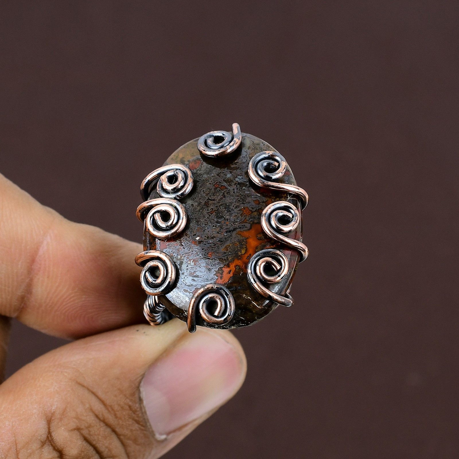 как выглядит Seam Agate Gemstone Copper Wire Wrap Jewelry Ring Size 7 X-Mas Gift v402 фото