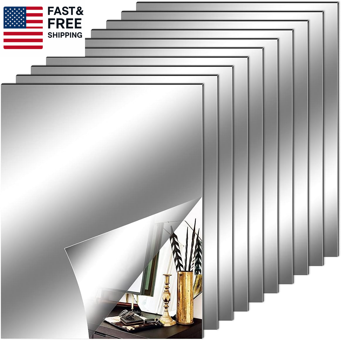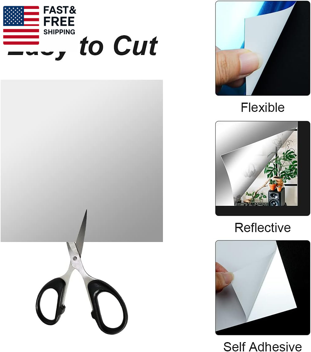 10 Pieces Flexible Mirror Sheets, Self Adhesive Decorative Plastic Mirror Tiles
