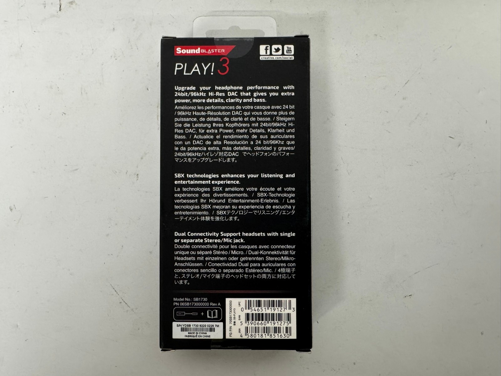 Creative Sound Blaster Play 3 USB Analog to Digital Converter SB1730 For PC MAC