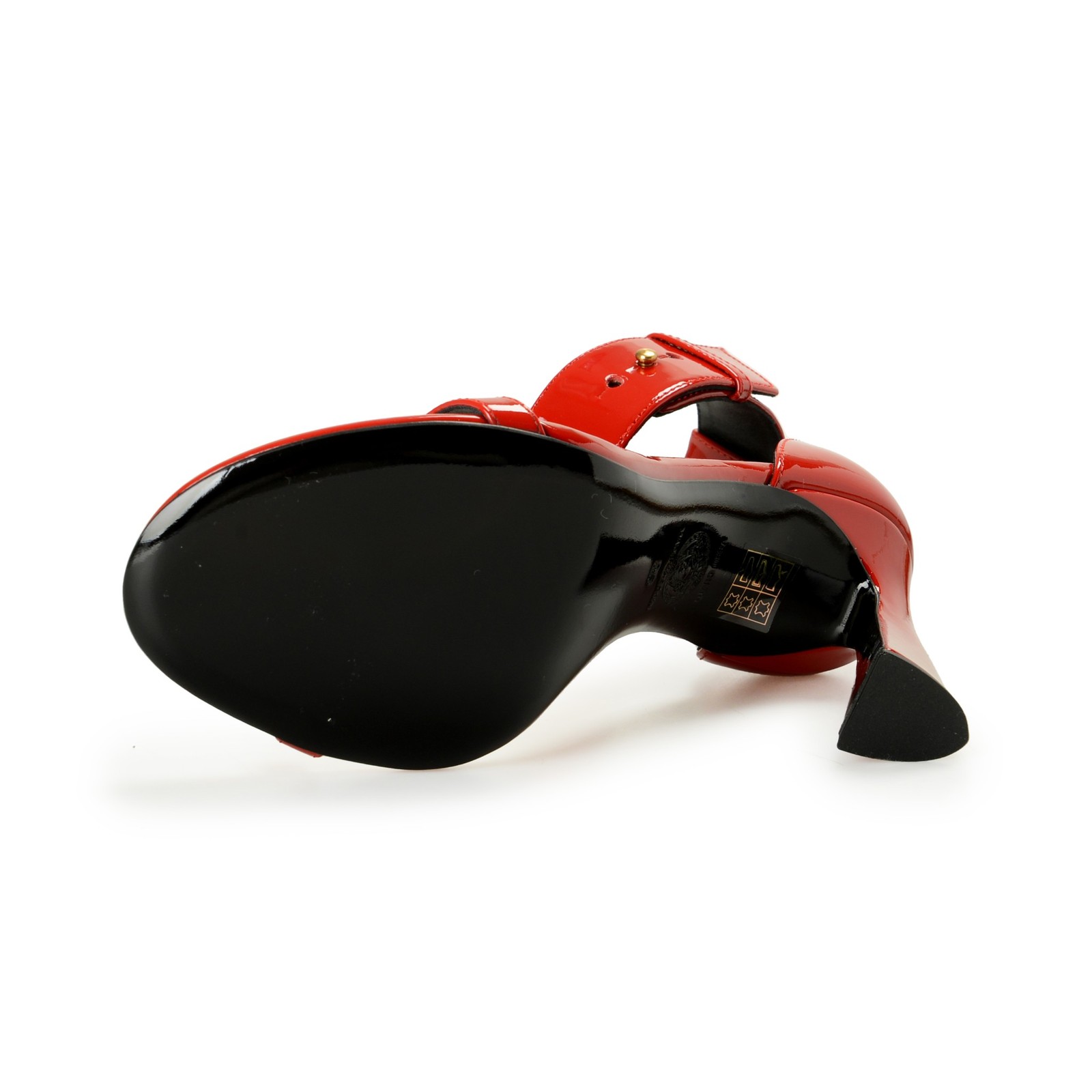 Versace Women's Gold Medusa Red Patent Leather Ankle Wrap Pumps Shoes US 7 IT 37
