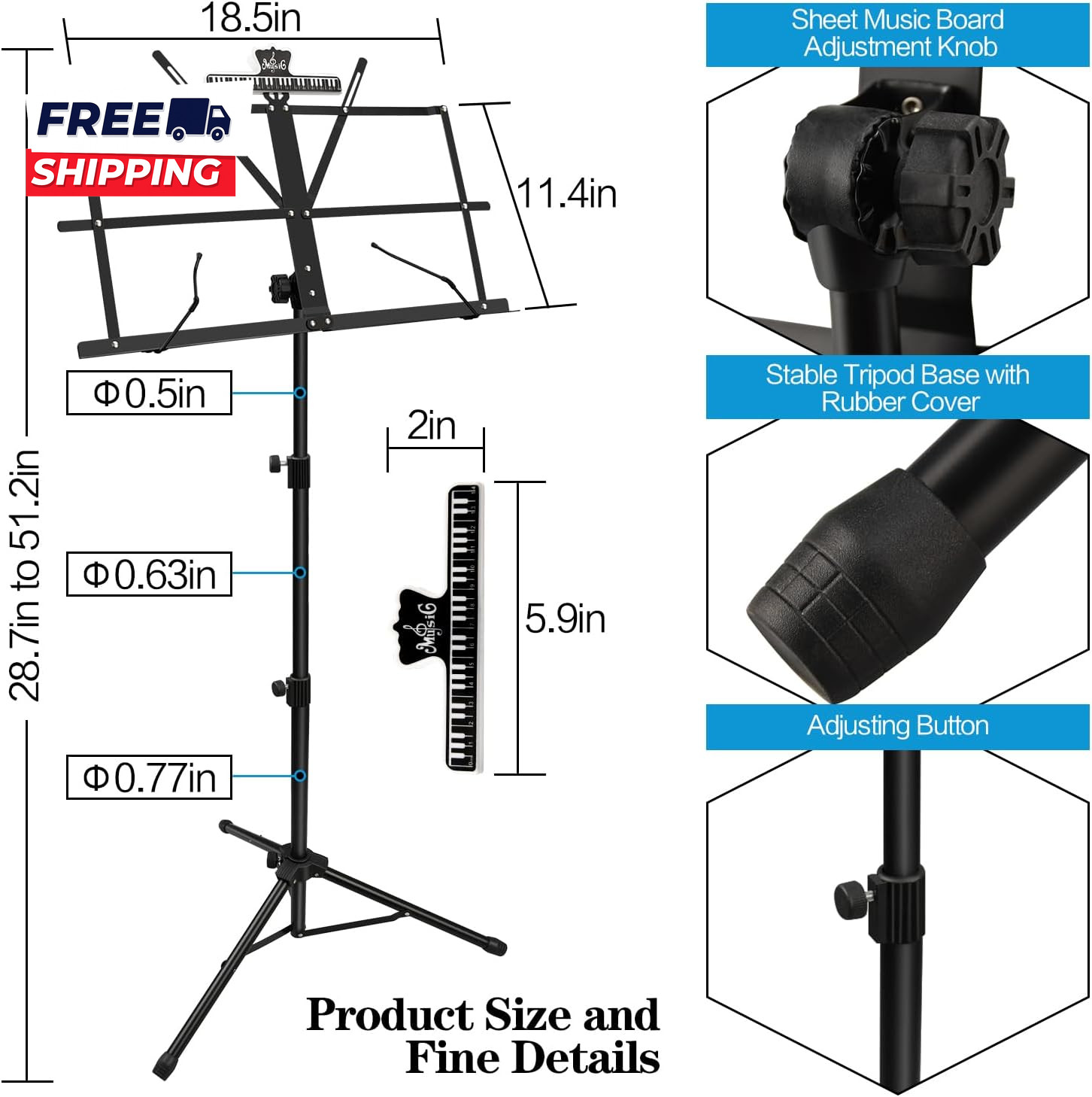 как выглядит 1 Pack Music Stand with Music Sheet Clip Holder Carrying Bag фото