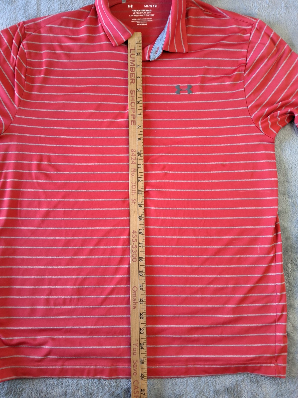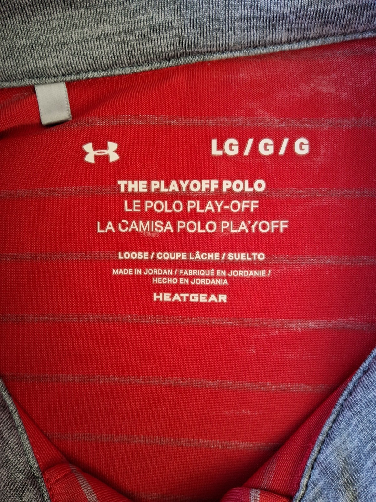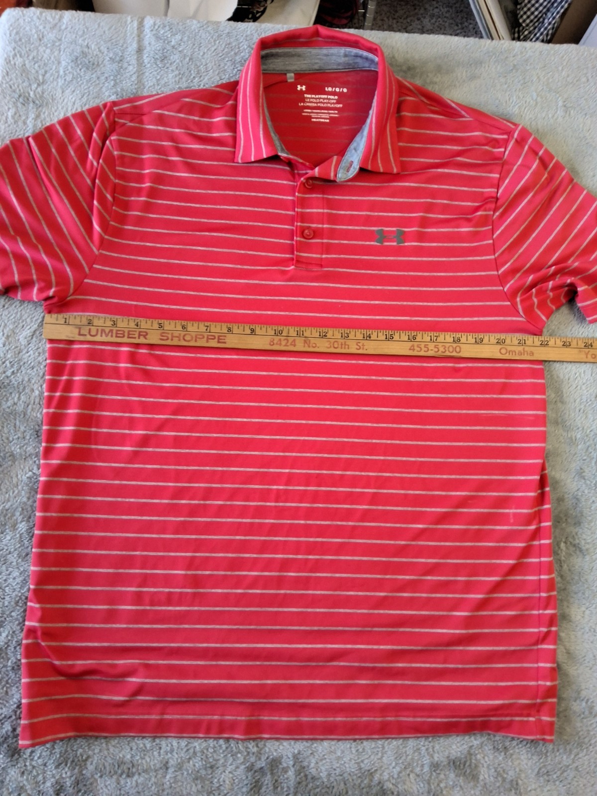 как выглядит Mens Under Armour Size Large Playoff Polo Golf Shirt Red Striped Heatgear фото