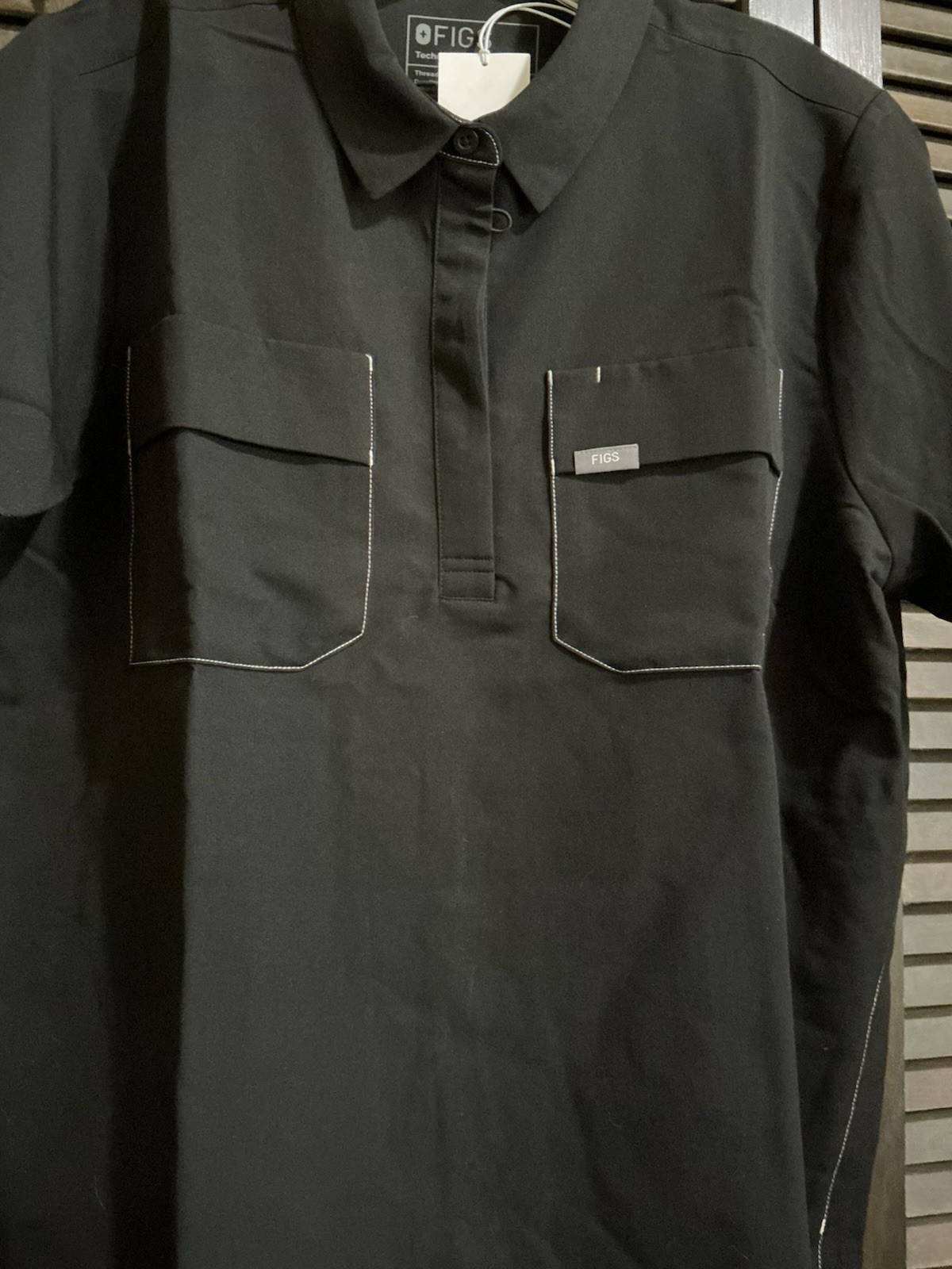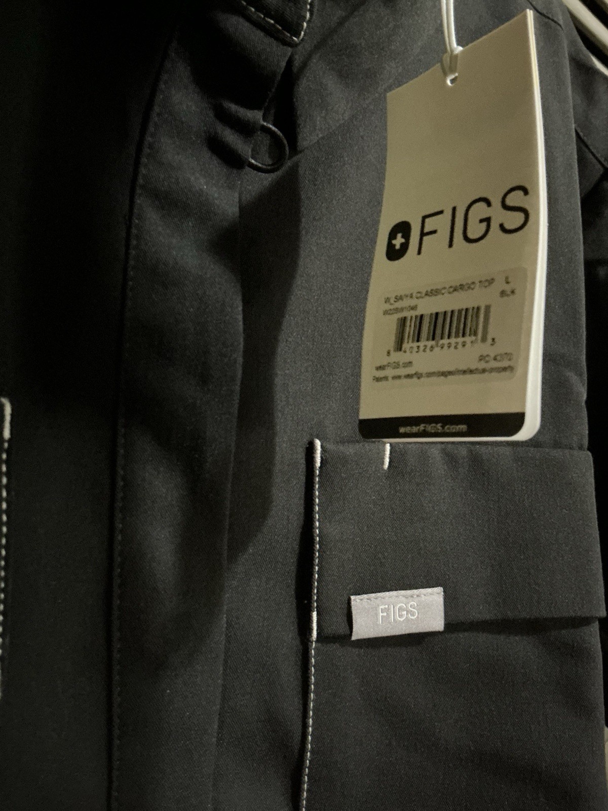 как выглядит FIGS NWT Scrub Top Black Saiya Classic Cargo Pocketed Technical Collection Sz L фото