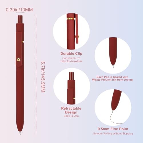 Colorful Gel Pens, 0.5mm Fine Point Retractable,Multi 6Pcs-Vintage Colors