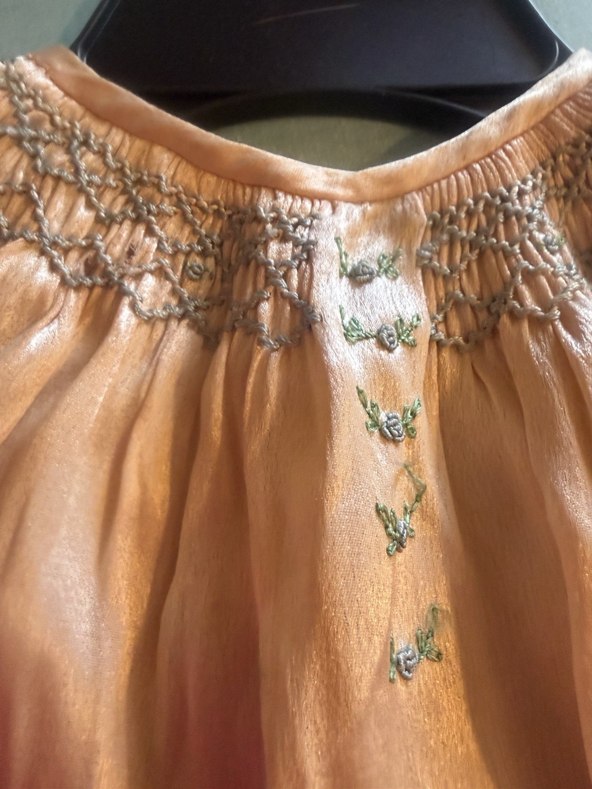 Antique Vintage Silk Handmade Baby Dress/Shirt Children s Pink Smocked