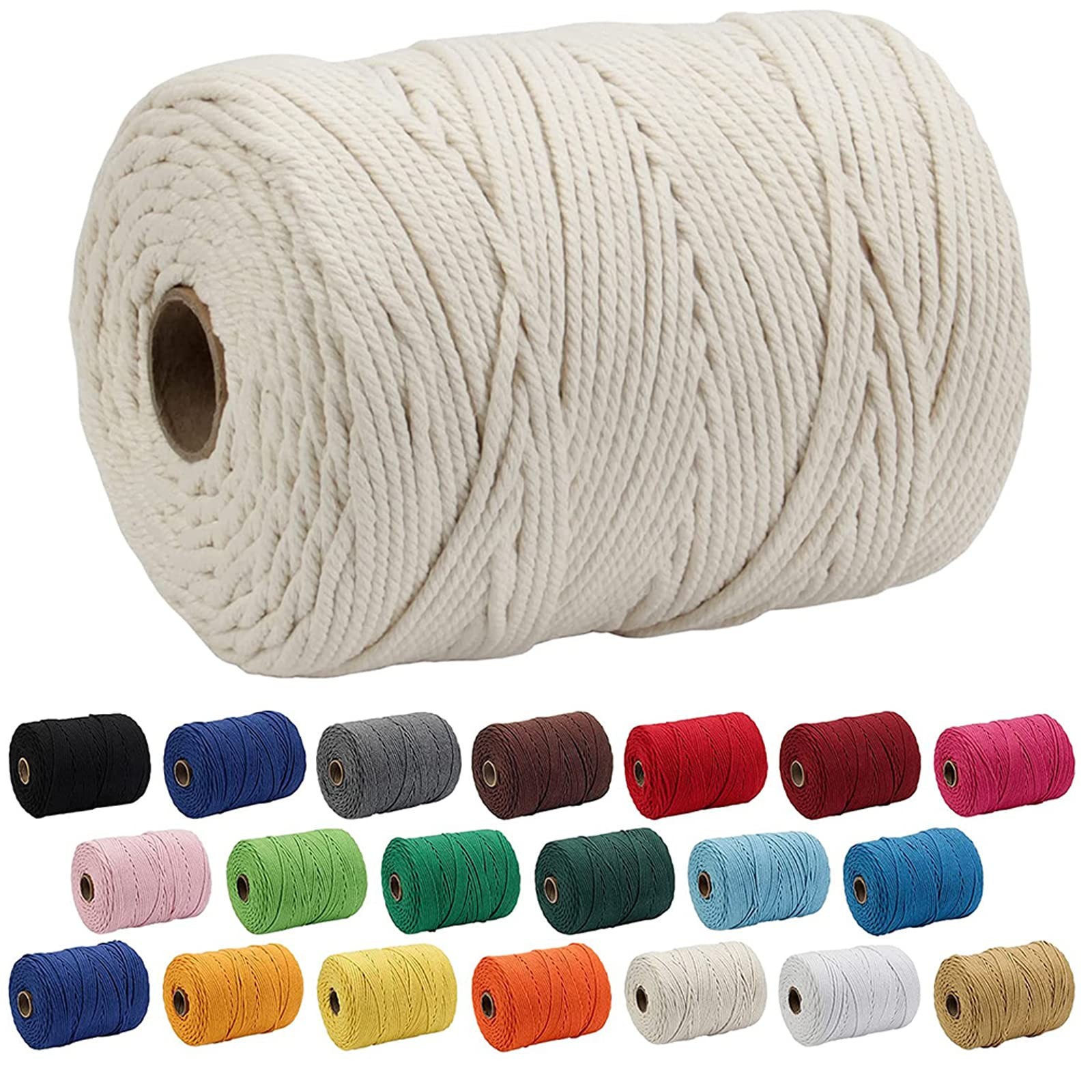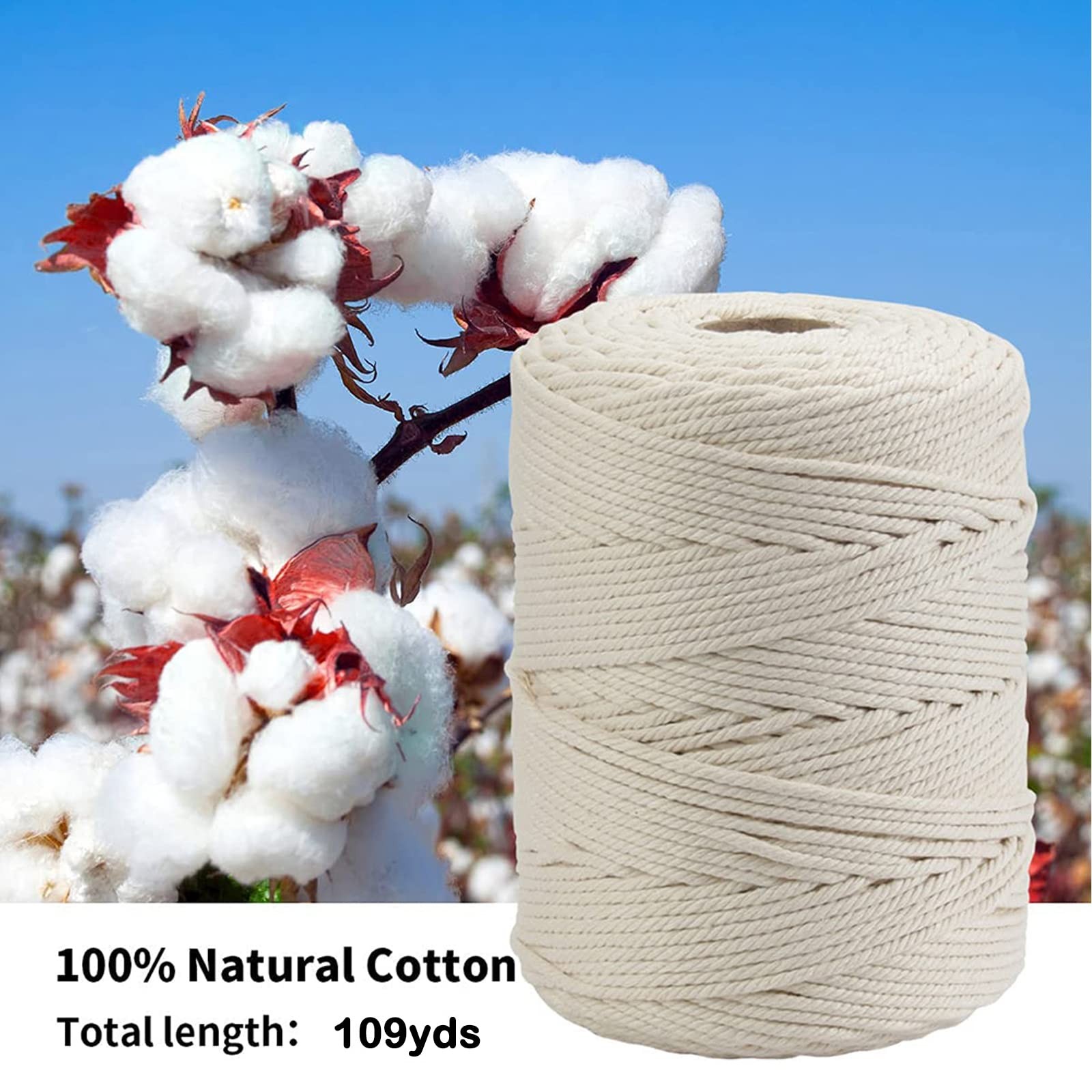 Natural Macrame Cord 5mm x 109 Yards Coffee Cotton Rope Twisted Yarn Soft