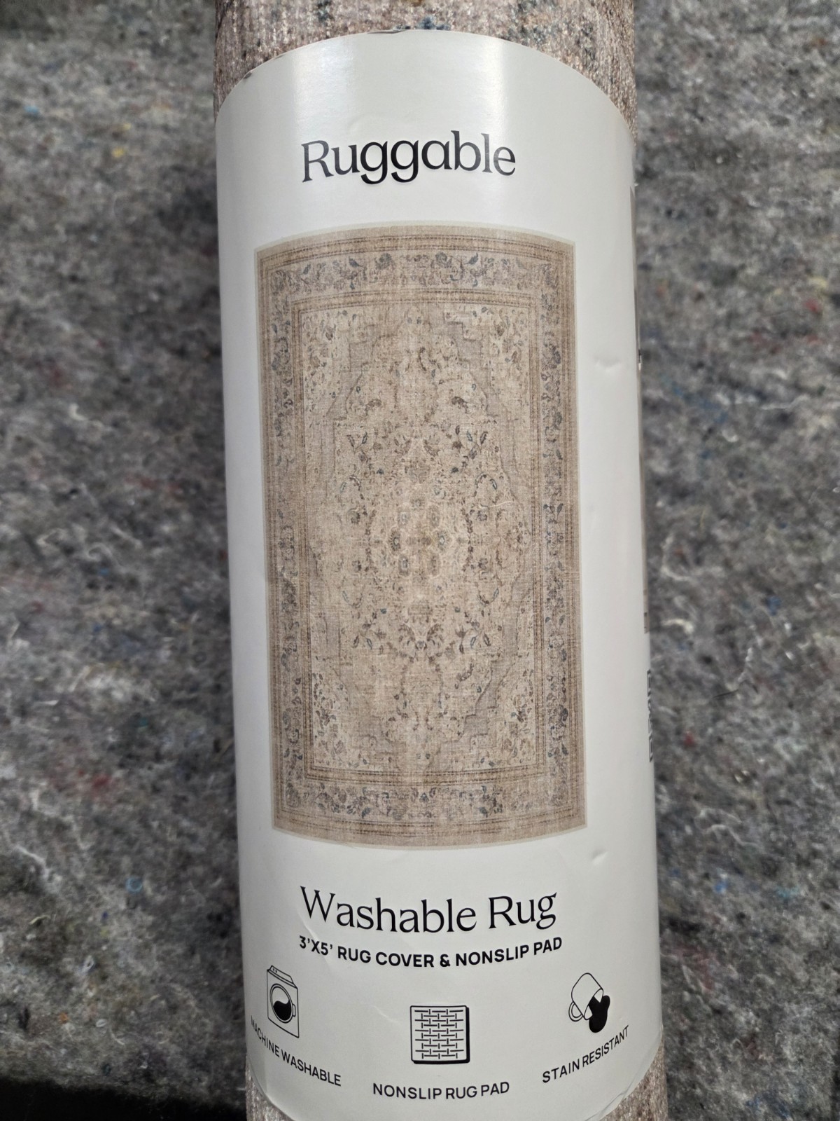 NEW Ruggable Adeline Ivory Opal Flatwoven Washable Rug And Nonslip Pad 3x5