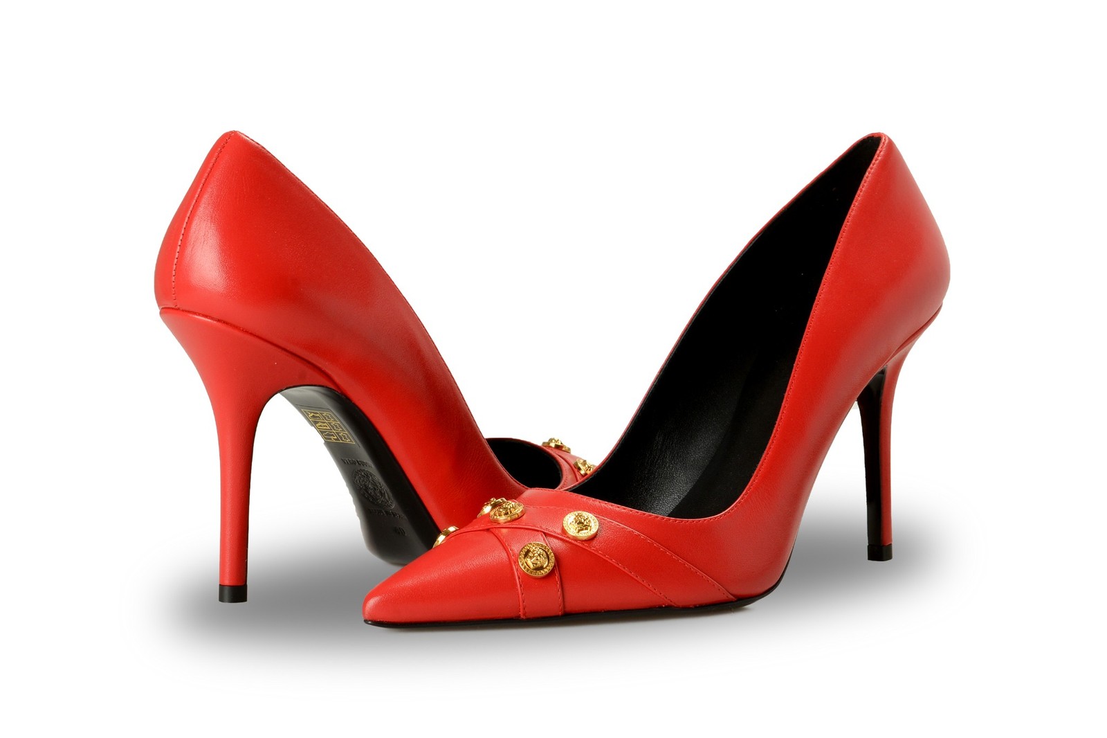 Versace Women's Gold Medusa True Red Leather Stilettos Pumps Shoes US 7 IT 37
