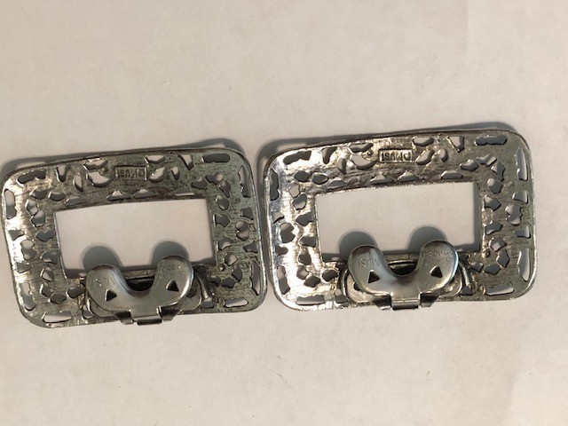 как выглядит MUSI Silver Tone Filigree Shoe Clips Vintage Rectangle Signed фото