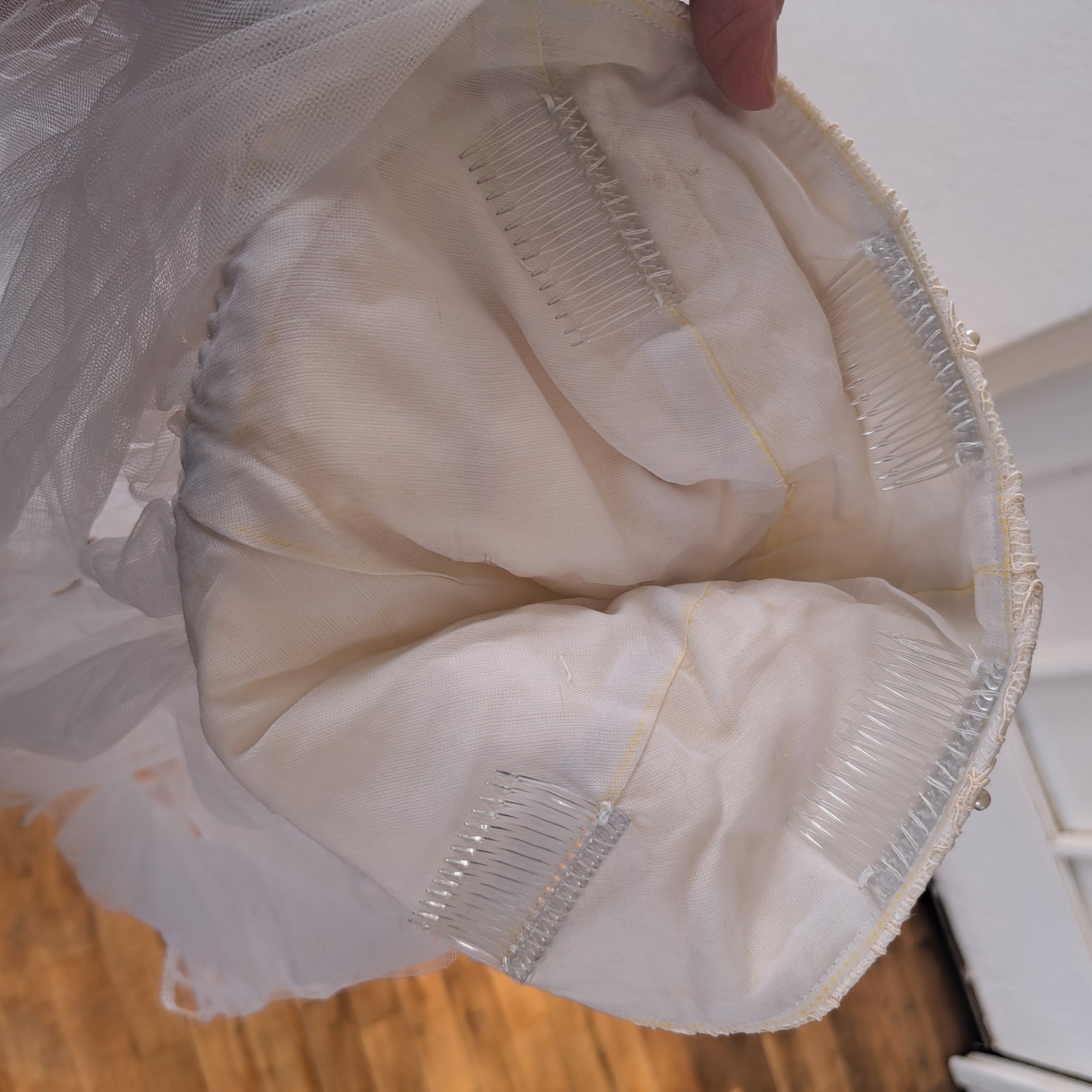 Vintage Wedding Veil Pearl Embellished Cap Layered Tulle Hair Clips Head Piece