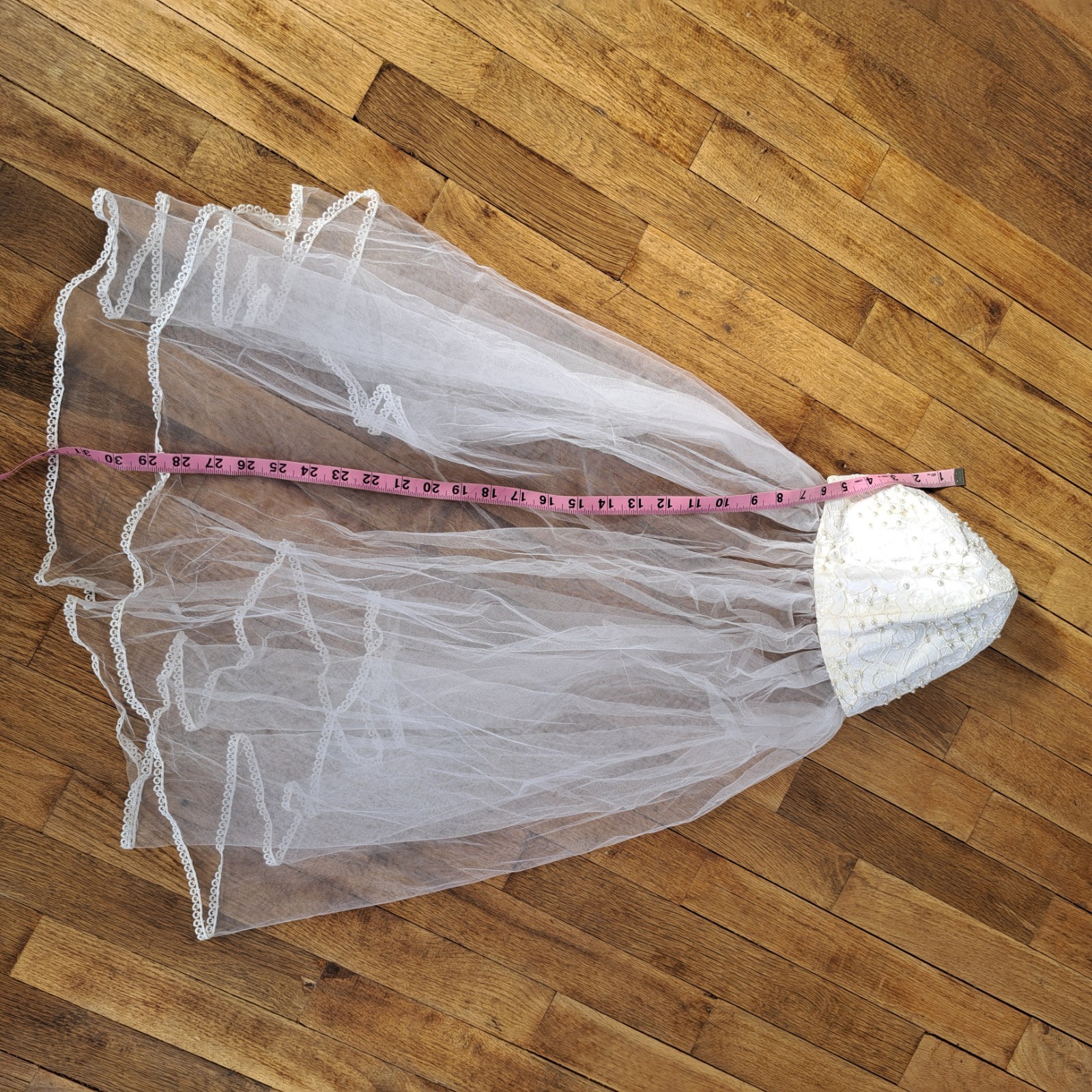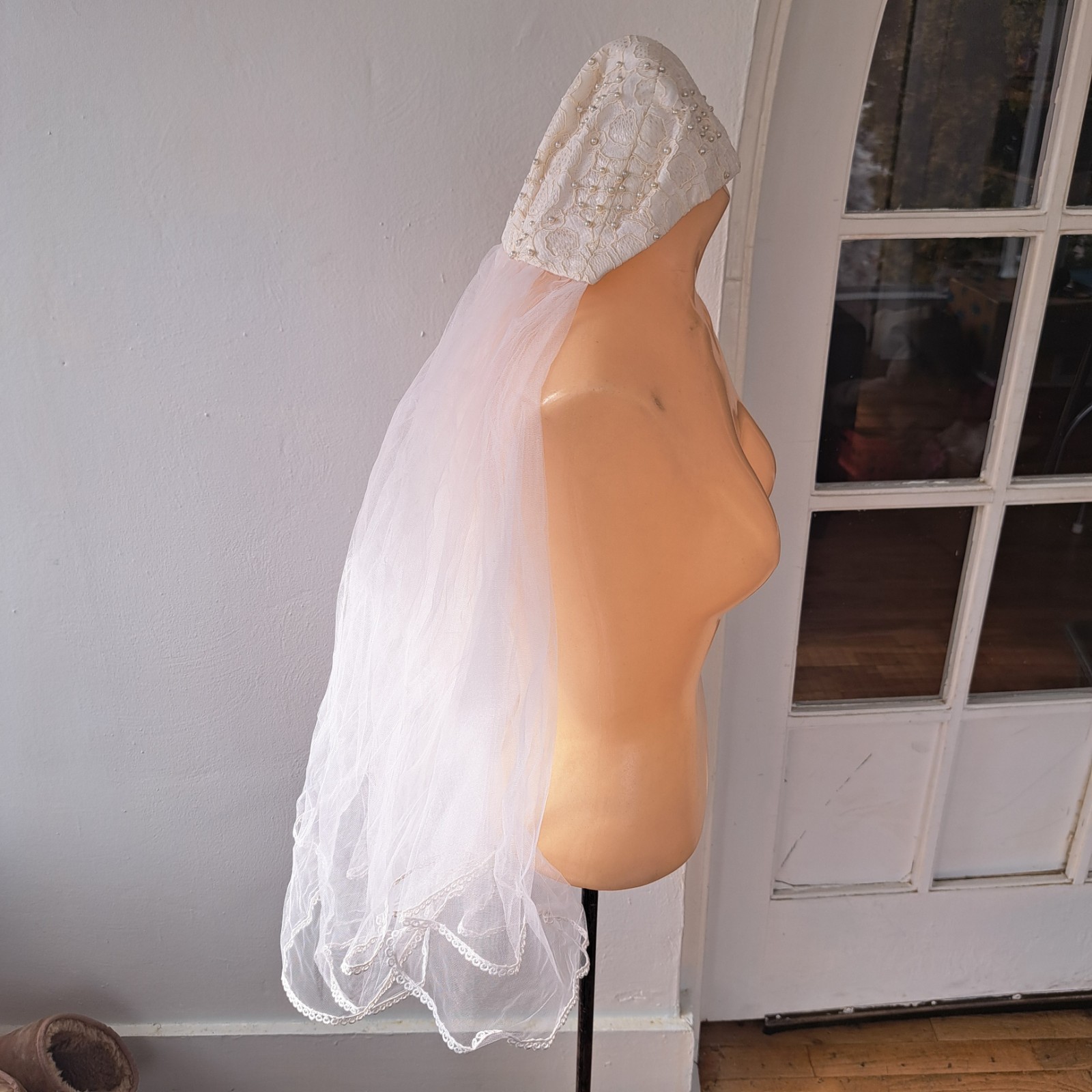 как выглядит Vintage Wedding Veil Pearl Embellished Cap Layered Tulle Hair Clips Head Piece фото