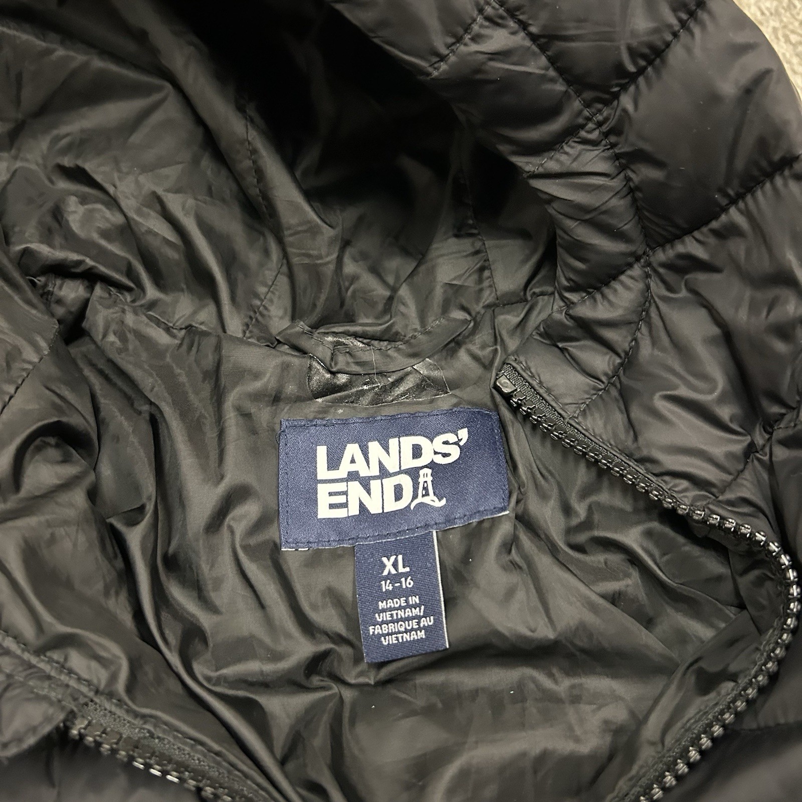 как выглядит Lands End ThermoPlume Packable Hooded Jacket Girls XL 14-16 Black Full Zip фото
