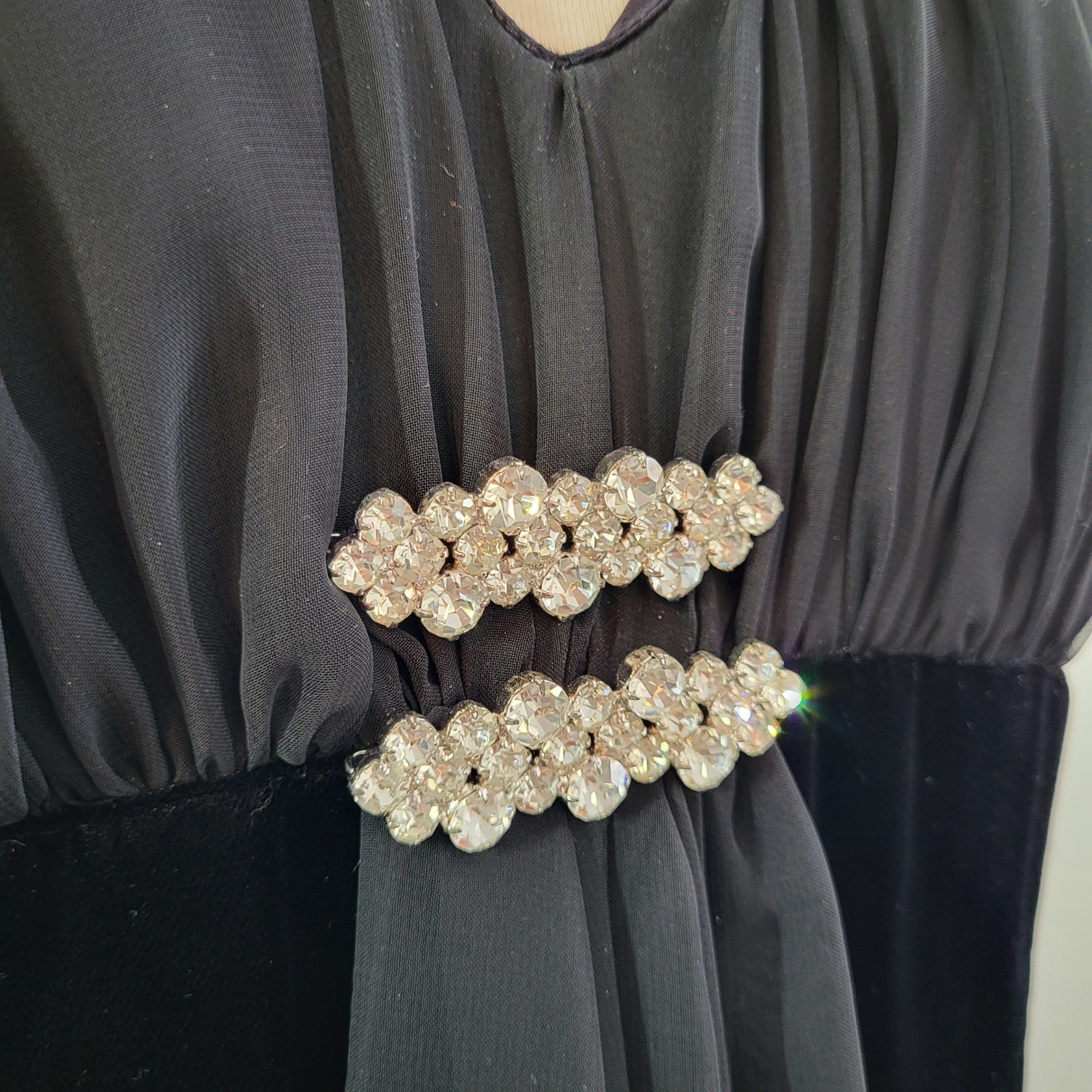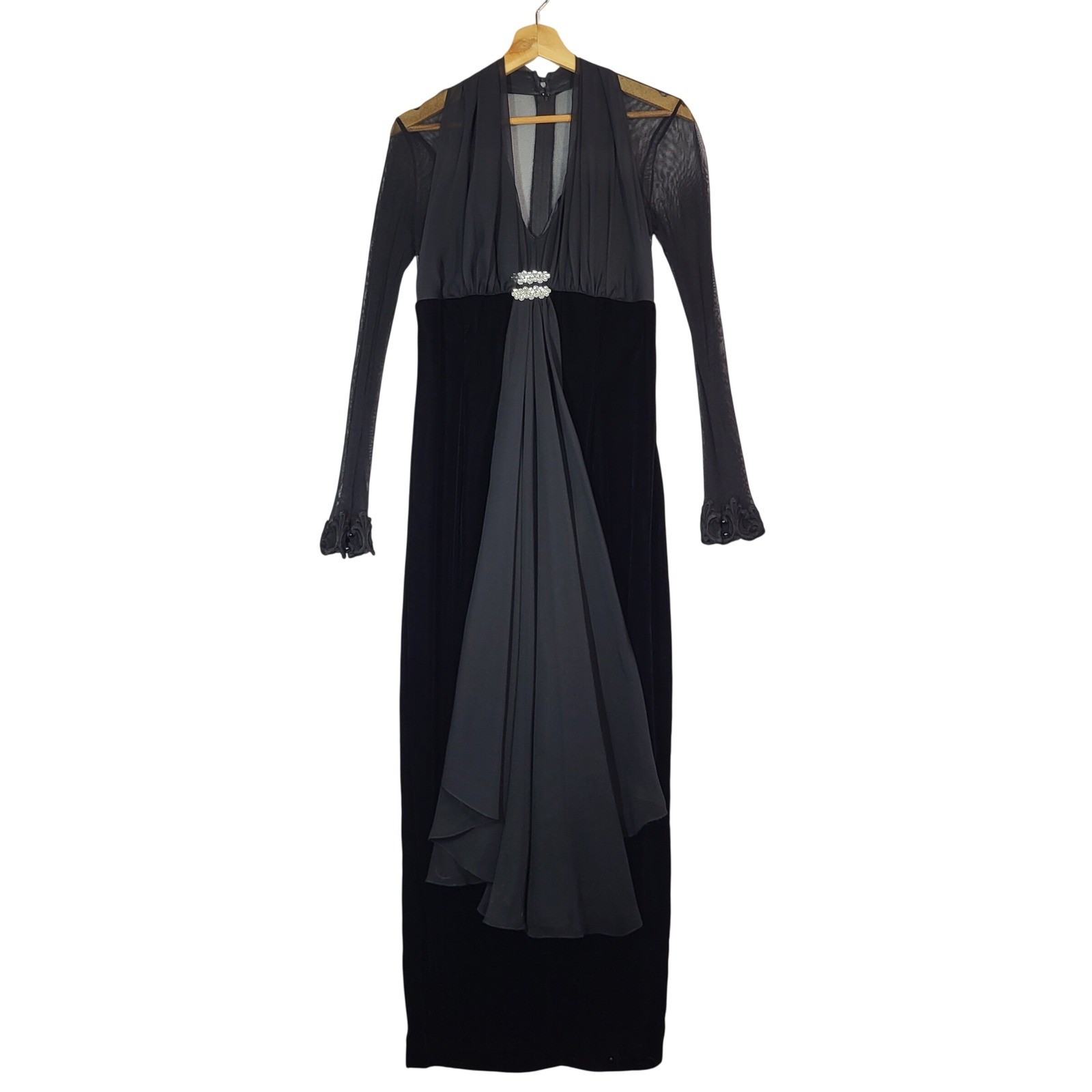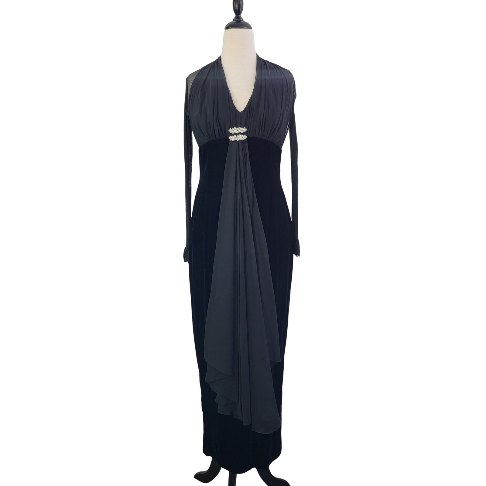 Vintage 90s Jessica McClintock Black Velvet Rhinestone Formal Gown Size 12 USA