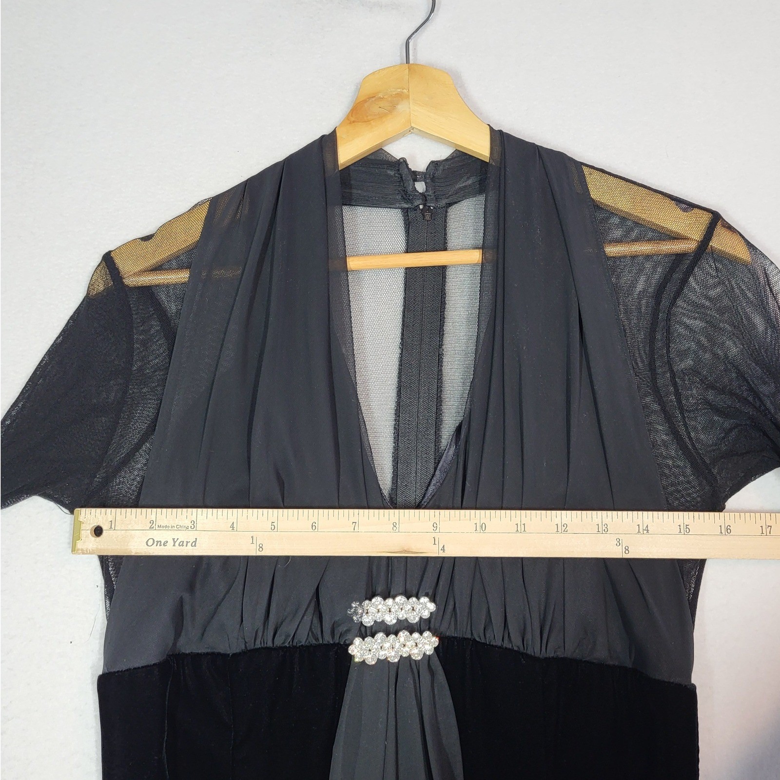 как выглядит Vintage 90s Jessica McClintock Black Velvet Rhinestone Formal Gown Size 12 USA фото