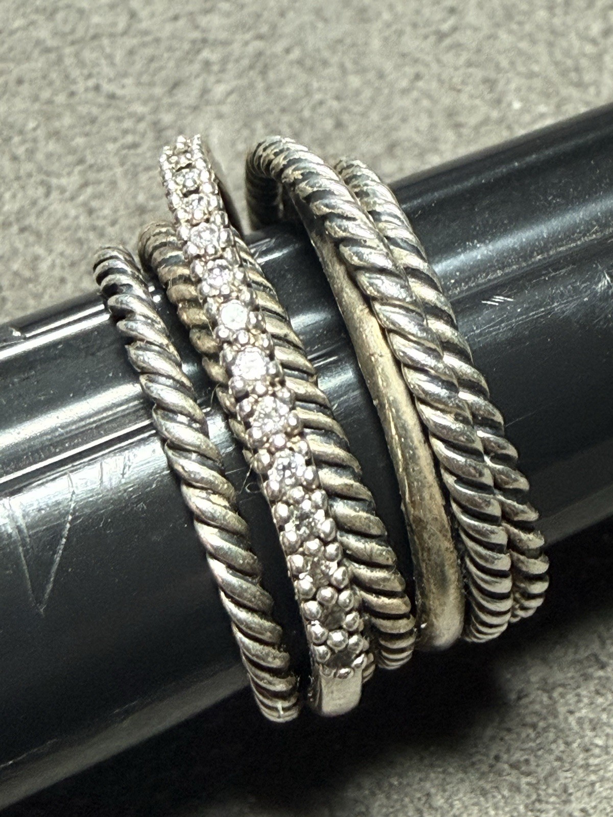 как выглядит David Yurman 925 Sterling Silver Crossover Wide Ring with Pave Diamonds Size 6 фото