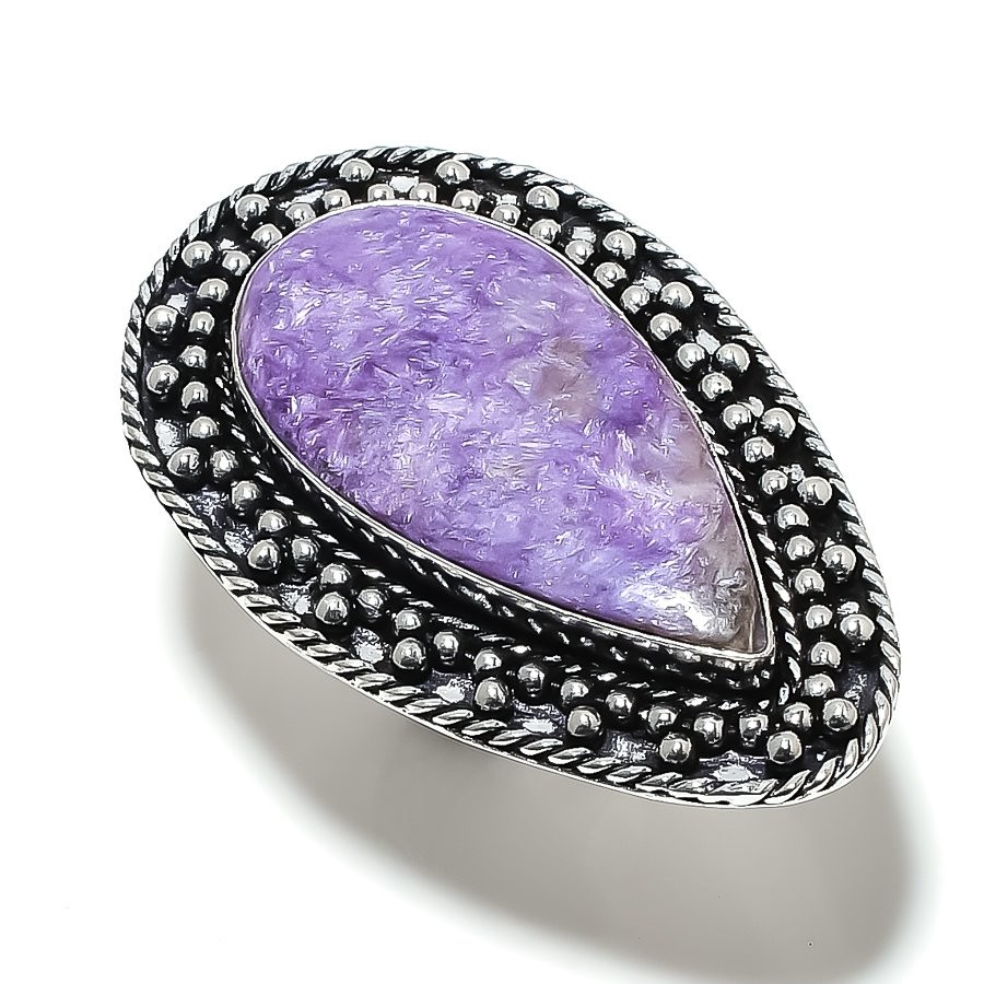 как выглядит Russian Charoite Gemstone 925 Sterling Silver Gift Jewelry Ring Size 7 C371 фото
