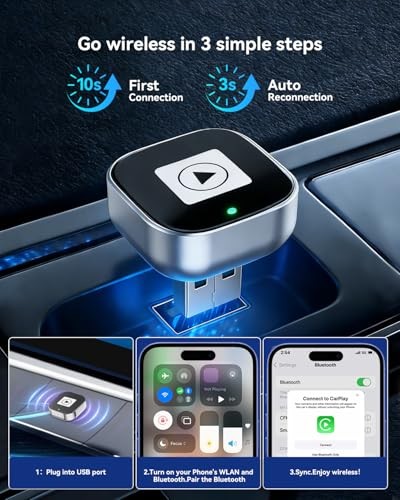 2026 Ultra Mini Wireless CarPlay Android Auto Adapter Metal Dongle Silver
