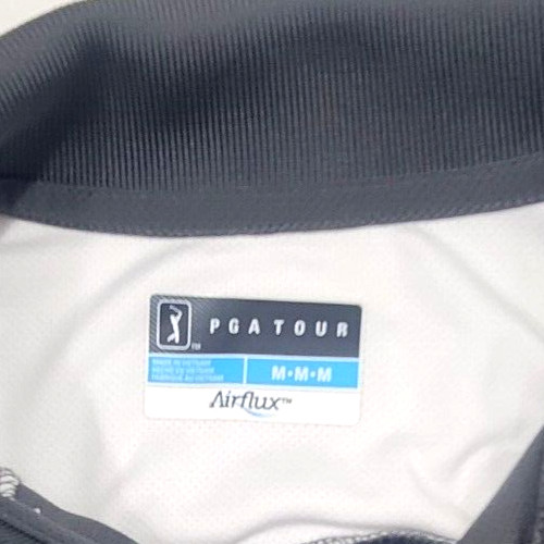 PGA Tour Mens Polo Shirt Gray White Golf Short Sleeve Logo Size M Medium
