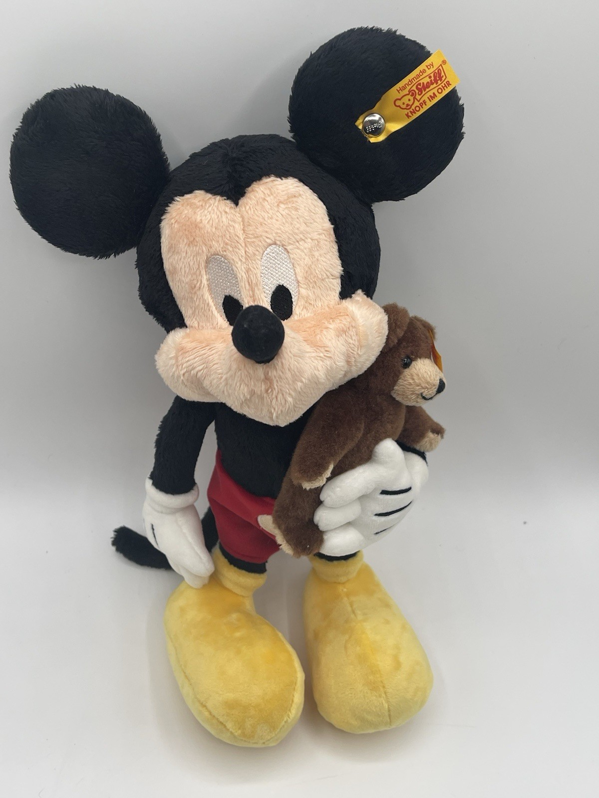 Disney Parks STEIFF 12 Mickey Mouse Holding 4.5 Teddy Bear Plush Doll