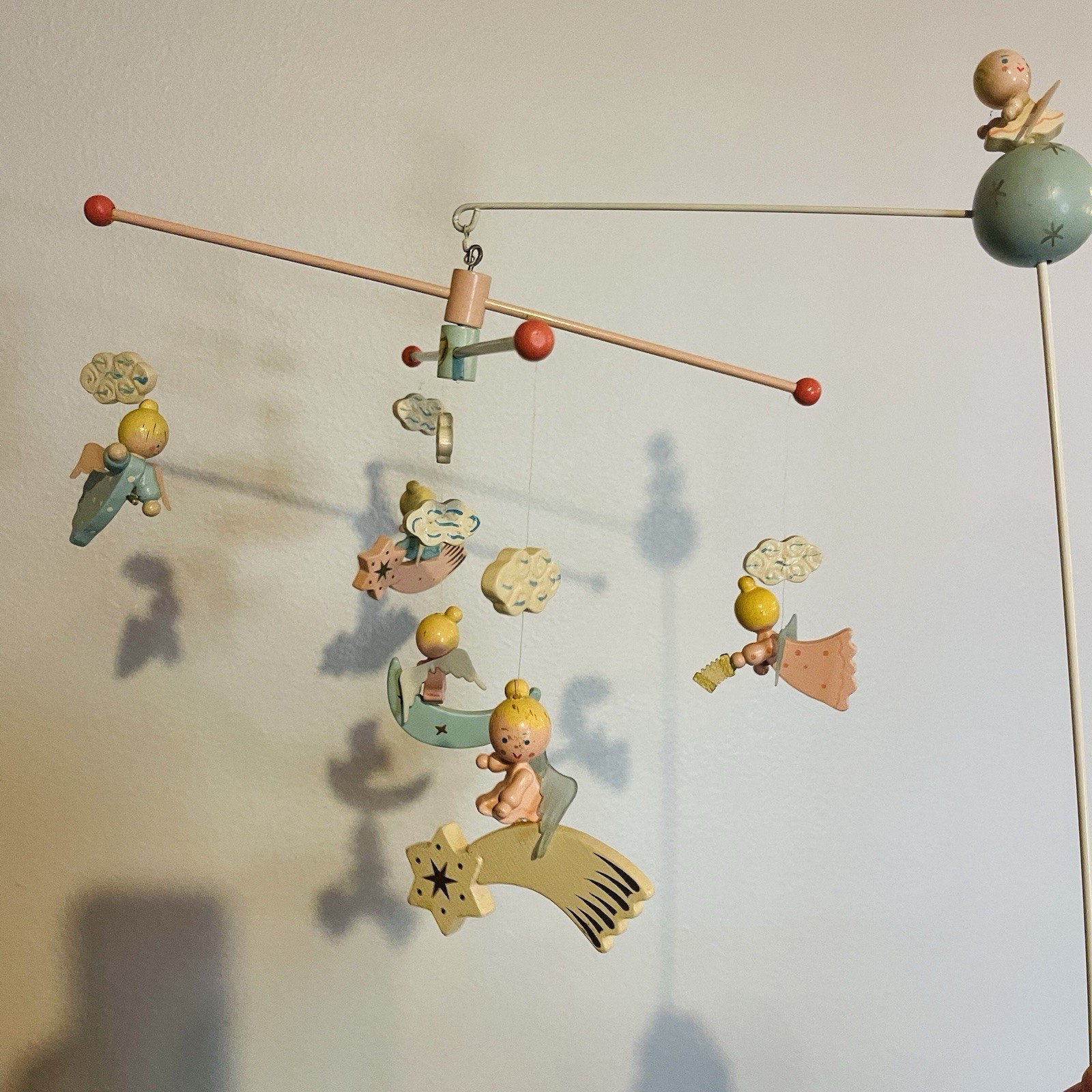 Vintage Hand Painted Musical Mobile by Irmi Angles Baby Crib Collectible
