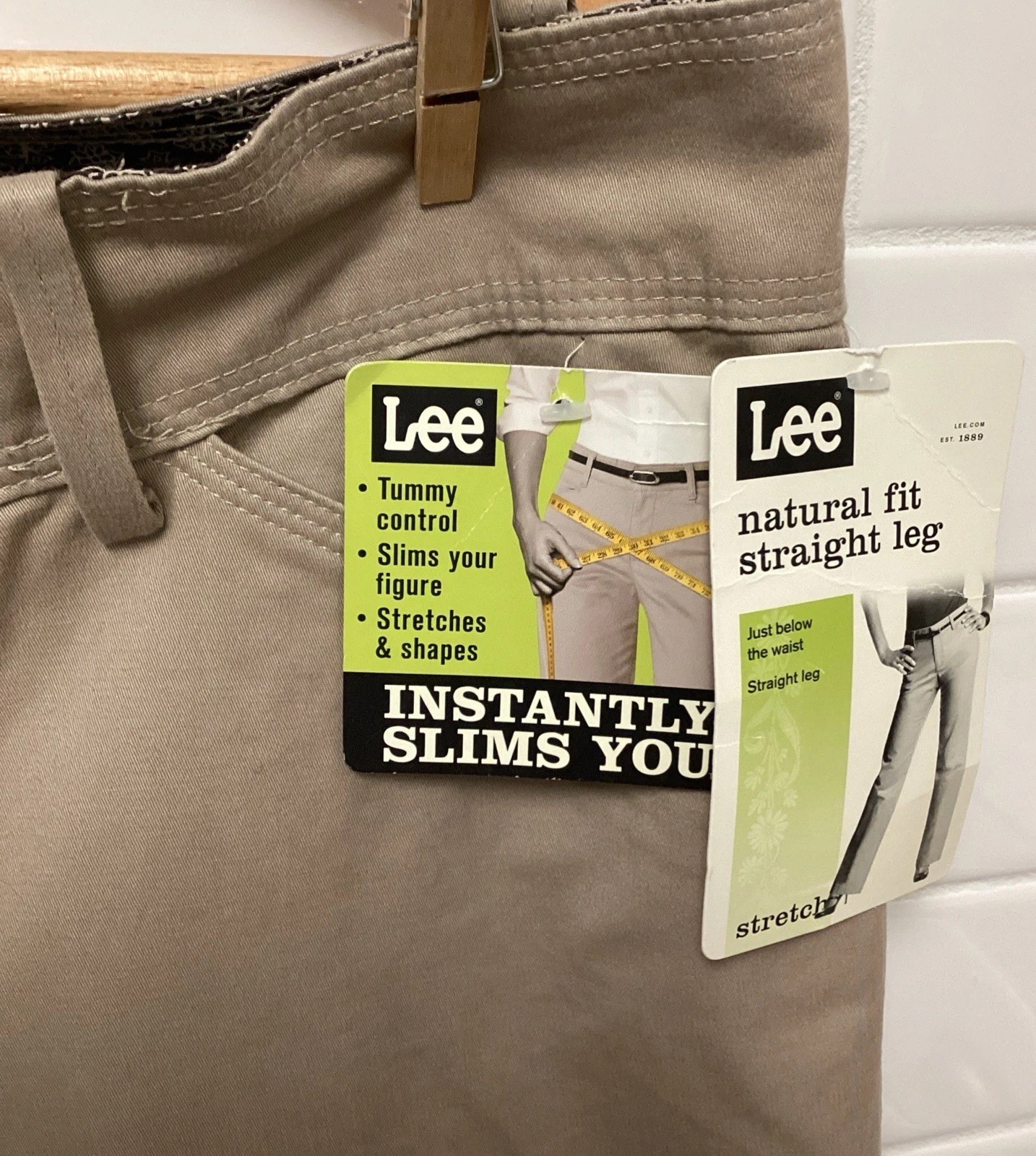 Wms Lee Natural Fit Khaki Pants Sz 16 Beige Tan Stretch Tummy Control NEW