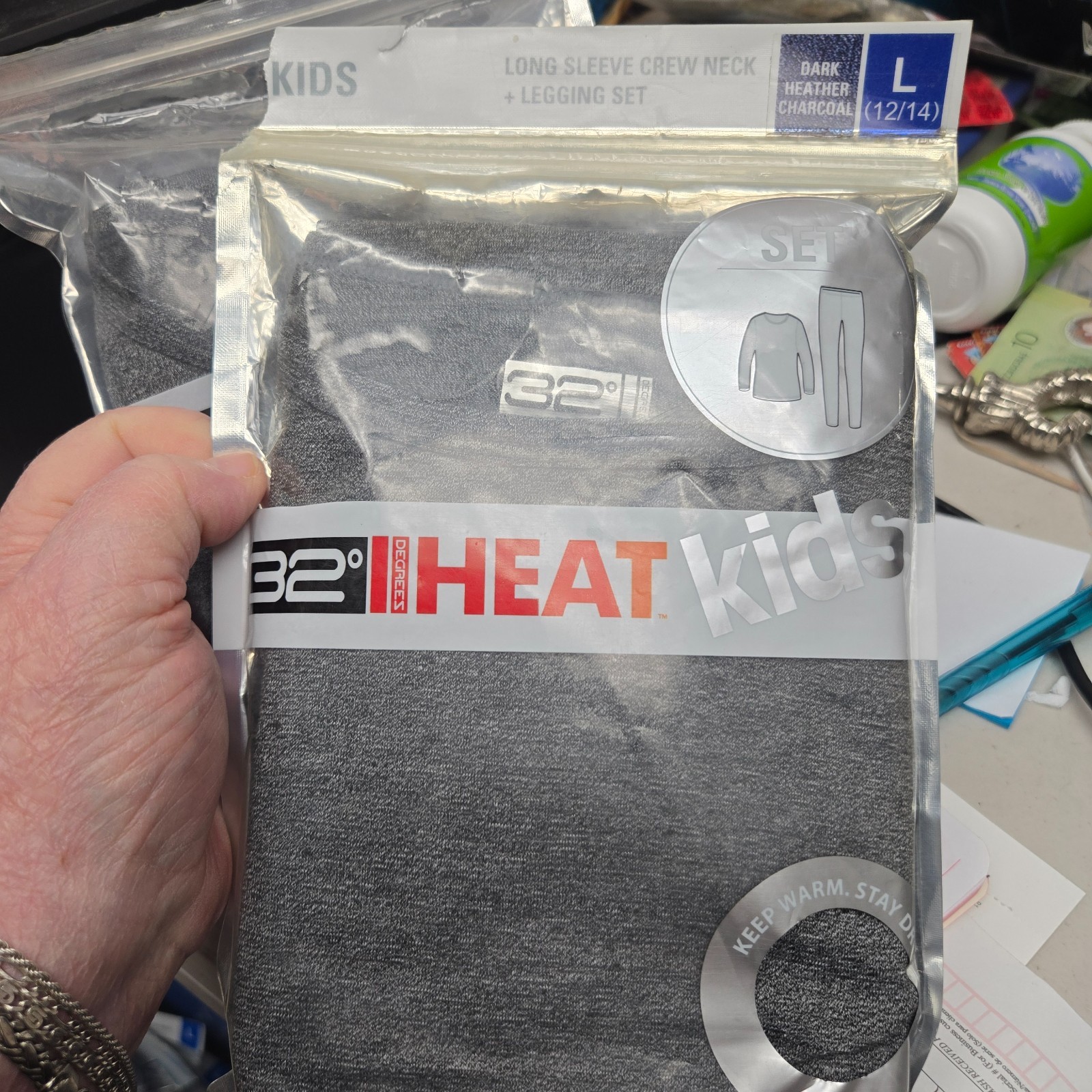 как выглядит KIDS LARGE DK HTR CHARCOAL 32 DEGREES HEAT TOP LEGGINGS SET BASE LAYER фото