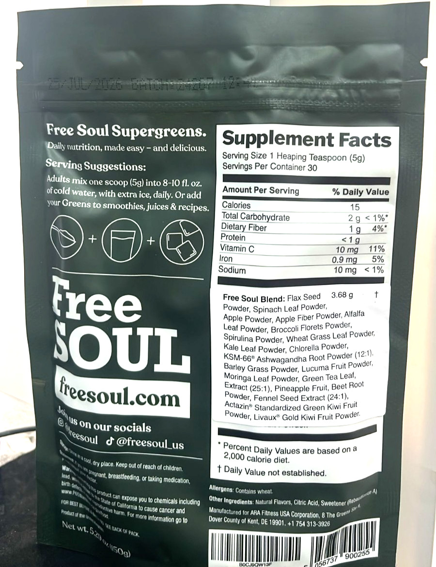 как выглядит Daily Super Greens Powder in Mango Flavor Free Soul 30 portion 5.29oz /exp 07/26 фото