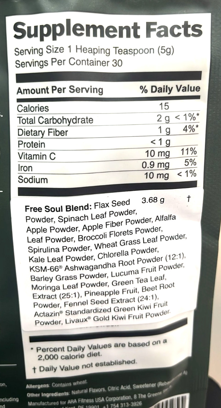 Daily Super Greens Powder in Mango Flavor Free Soul 30 portion 5.29oz /exp 07/26