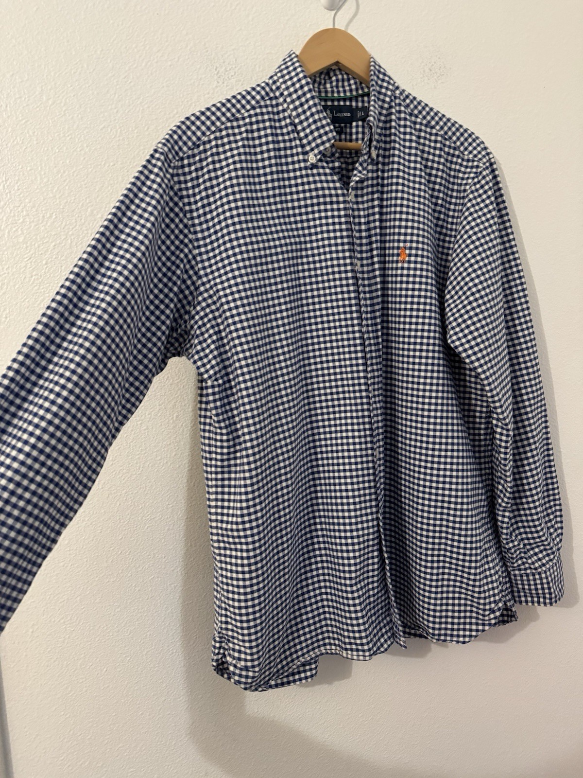 как выглядит Ralph Lauren Mens Shirt Blue Gingham Button Down Size L Pony Classic Fit EUC фото