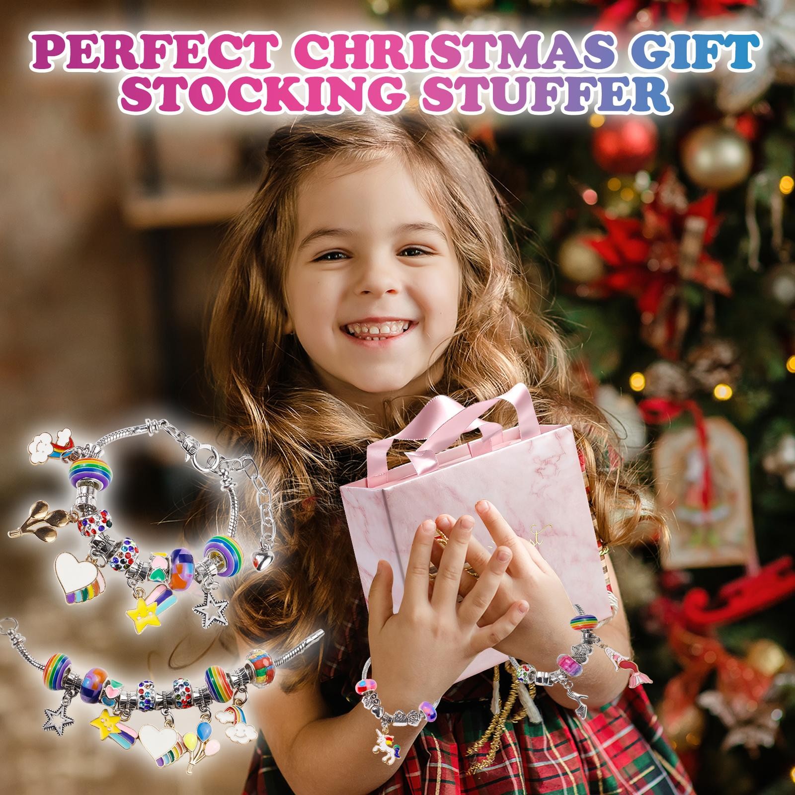 Girls Rainbow Charm Bracelet Set Unicorn Heart DIY Beads Jewelry Gift
